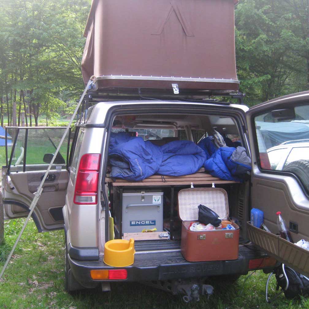 Už se tu někde o tom mluvilo. Mam v kufru konstrukci pro lednici a současně pro spaní. Protože také nemohu vymontovávat sedačky, jen sklopím sedačky a na přední opěrky zavěsím vystužené desky, které k sobě stáhnu popruhem s rychlosponou. Celá instalace trvá cca.5 minut, jen mam zásadu že to instaluji vždy před odchodem do hospody, nikdy ne po návratu z hospody