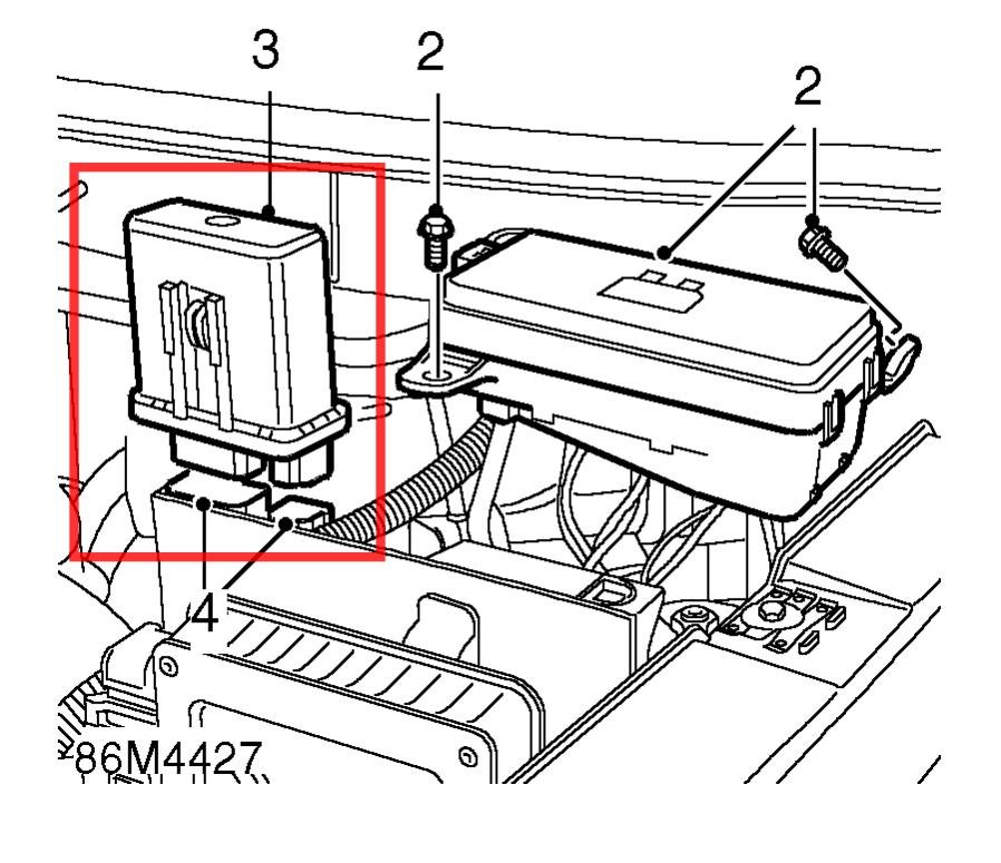 levý horní roh - relé palivové pumpy