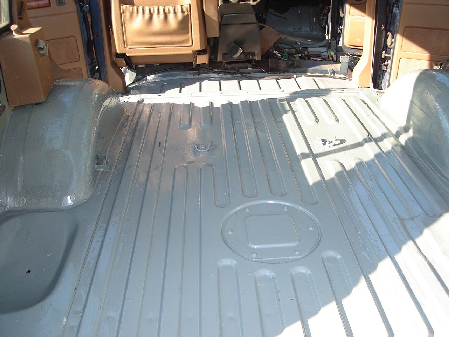Rangie už je svlečený do naha. Po pravdě pod slušivým kabátkem už to zase tak slavné nebylo (ale není to nijak hrozné). Rám vypadá, že je OK, crossmember pod zadním spodním tailgatem je sežraný, footwells mají také sem tam nějakou tu dírku, stejně jako bulkhead, který je děravý pod čelním oknem. Dáváme dohromady podvozek - vzhledem k tomu, že auto není určeno pro těžký terén, volím standardní žluté pružiny Britpart + nastavitelné tlumiče Koni Heavy Track, polybush kit a ventilované brzdové kotouče EBC. Pak se to všechno zkušebně poskládá s motorem a převodovkou, co bude potřeba, dovaří se a pak hurá na pískování, antikorozní ochranu a povrchovku šasi a rámu karoserie (ještě, že můj Rangie byl vyroben před rokem 85, kdy se přešlo ze šroubování rámu karoserie na vaření - pak by se s tím asi pracovalo o poznání hůř). Jinak skiny obou dveří nejsou nijak krásné - vybublané s vrstvami kitu. Nevíte někdo o nějakých pěkných (připomínám, že je to dvoudvéřák)?