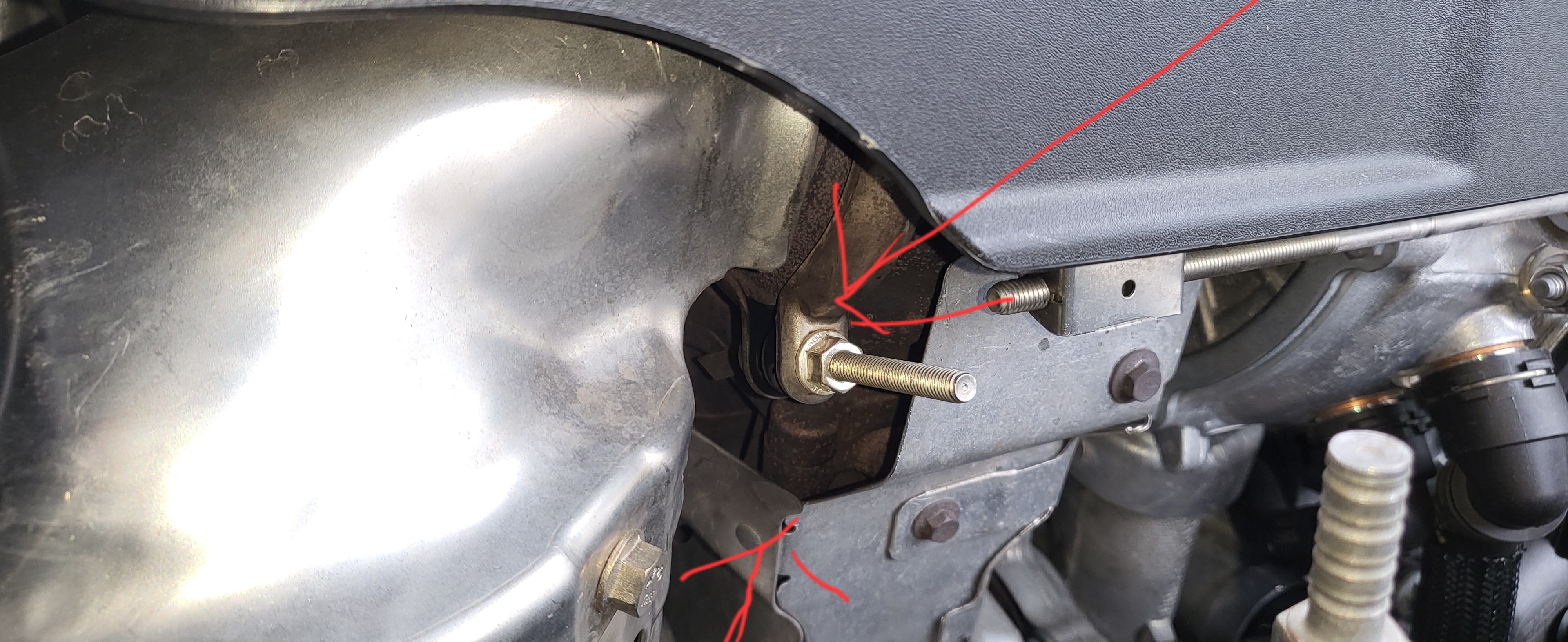 Na fotke ten spoj, dolná šípka ukazuje aj ten pliesok ocmudeny, fotené z boku, spolujazdcova strana
