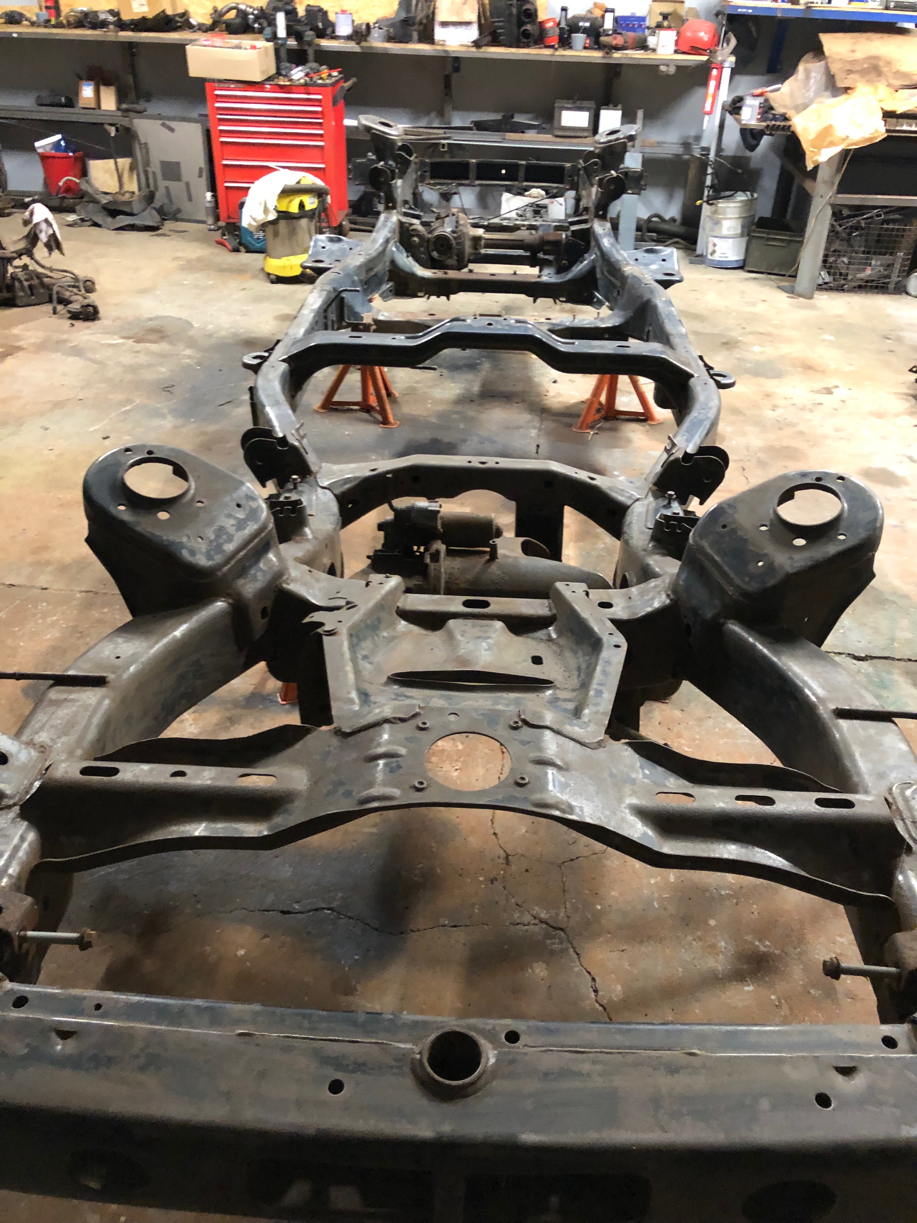 Bouda už je pryč a tak jsem se včera pustil do extrakce motoru s převodovkou a dnes dokončení rozebírání zbytků na šasi.