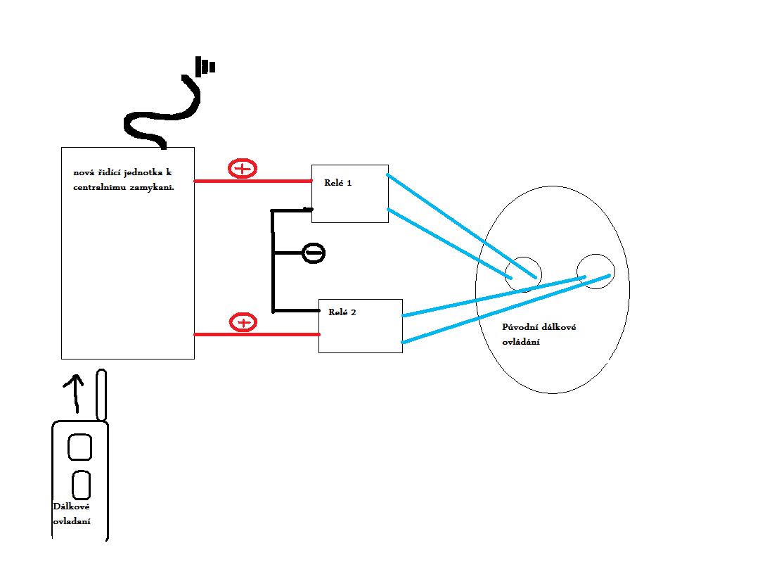 Takze po neuspesnych zapojovani nove ridici jednotky s novymi dalkovymi ovladanim jsem musel vymyslet alternativni reseni.Zapojite doma novou ridici jednotku na 12V,najdete si merakem kde vam jdou vyvody 12V+ pri zamikani a pri odemikani a tyto dva vyvody zapojite na dve relatka,ktera budou fungovat namisto tlacitek na puvodnim dalkovem ovladani.Vyndejte plosny spoj z puvodniho dalkoveho ovladani,mikropajkou priletujte tenke dratky na spinace puvodniho ovladace.kazde tlacitko napojte kazde zvlast na spinaci kontakty relatka co uz mate pripojena na novou centralni jednotku a mate vyhrano.Je to trochu humpolacke a slozite,ale kdyz nekdo nerozumi elektronice jako ja,tak to je dobra nahrada namisto navsteva draheho autoelektrikare.Celou jednotku s relatkama a puvodnim dalkovym ovladanim jsem zavrel do male plastove krabicky hermeticky uzavrel,novou antenku jsem nechal koukat ven a na nova dalkova ovladani jsem nechal vybrousit planzety klice,vyloupnul cipy imobilizeru a vlepil do novych dalkovych ovladani a je hotovo.KONECNE!!!