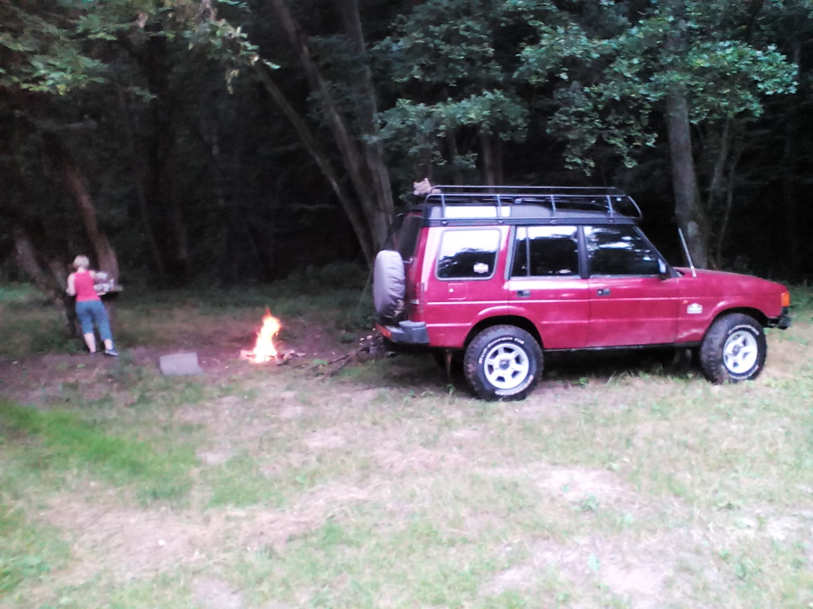 Skočili jsme do auto, zahučeli dolu, projeli řeku a byli na tabořišti.
