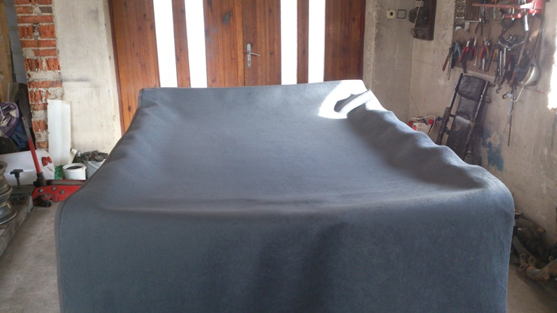 Mal som z toho panický strach,ale som šťastný,že to mám za sebou... Inak je to celkom jednoduchá práca. Začali sme od stredu k zadnej časti - tá mi prišla jednoduchšia - tam som si to "nacvičil" - a potom som išiel smerom dopredu - tam sme sa troška zapotili okolo tých záhybov - inak treba aspoň 3 ľudí... Lepidlo sa nanáša na obi dva povrchy. :Pohoda: