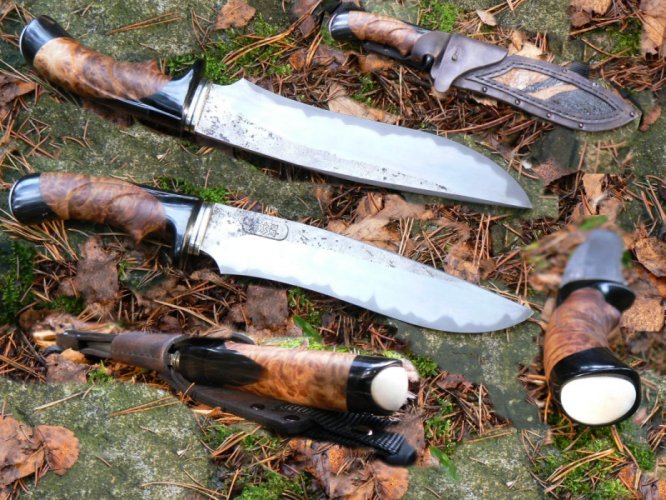 Tak tady je jeden ručně kovaný "sendvič" podle mého návrhu od pana Bolfa.Ohromná výhoda byla,že jsem byl přímo při jeho výrobě a na místě jsme se domlouvali jak na materiálu,tak i na ostatních detailech tak,aby byl přímo dle mých požadavků a představ.Pana Bolfa vřele doporučujilumberjack píše:Takže Fjodor Fjodorojovič FedorovBigBang píše:jestli to má bejt bukva, tak je to FNe neznám žádný ruský nožíře, ale hodně českých... Kterých je hodně vyhlášených. Hlavně bych rád apeloval na lidi, co si chtějí koupit nůž, ať už na cokoliv, tak proč nepodpořit nějakého českého nožíře a nekoupit nůž u něj? Proč kupovat kvalitní nože od vyhlášených firem, vyráběné v sériích, které jsou sice samozřejmě kvalitní!, (ale) jsou drahé a vlastní je s vámi asi několik tisíc osob, když si můžete koupit ručně vykovaný nůž? Který má svou osobnost a zaplatíte prostě jen člověku, který vám nadělí parádní ručně dělanej originál, co nikdo jinej mít nebude? Takovej nůž se pak předává v rodině po generace dál... Protože je to nůž, kterej vypadá pěkně, ale havně vydrží poplatně kvalitě výrobního procesu. Lidi, nekupujte ty čínský sračky, jasně houbu s tim očistíte, chleba ukrojíte, ale............