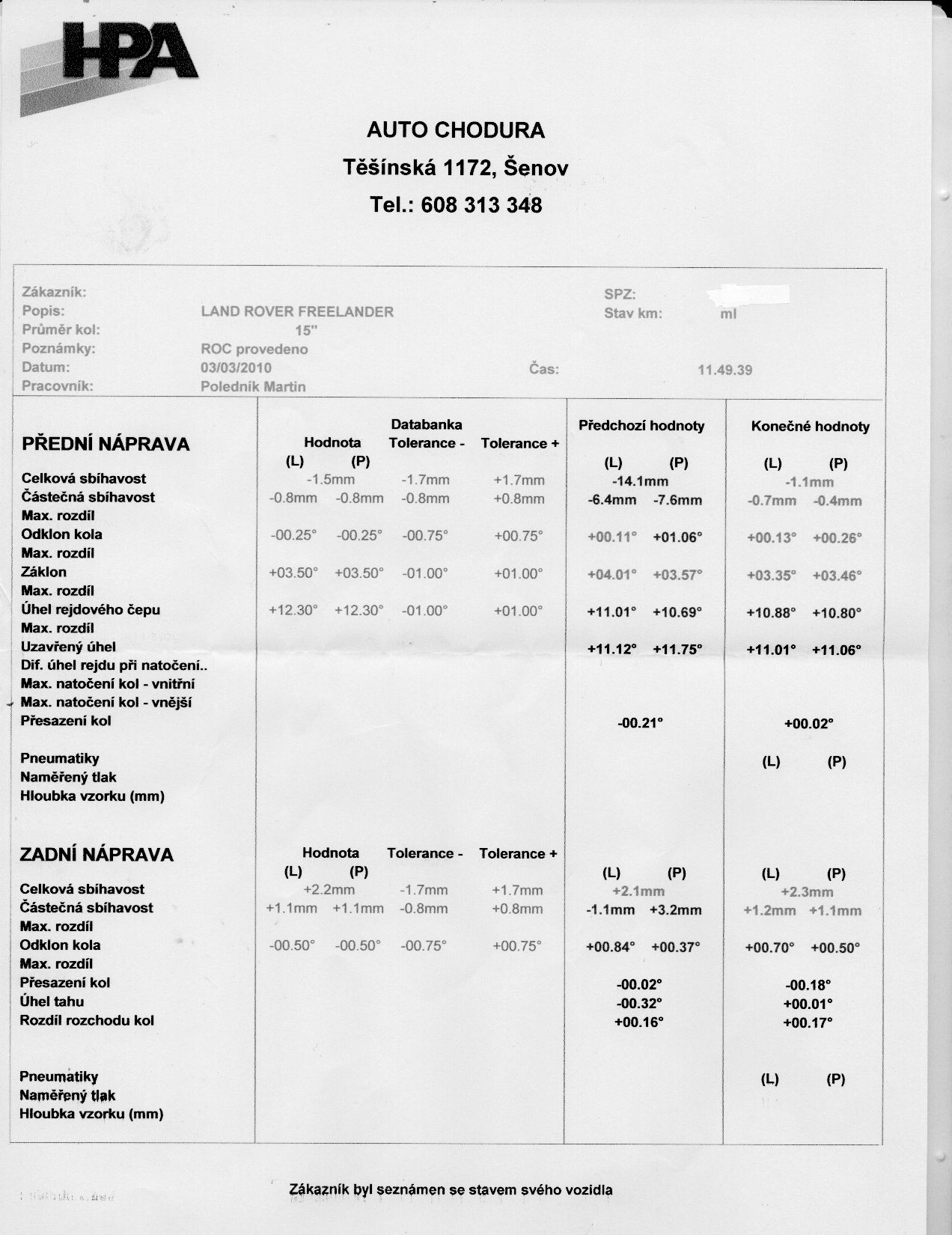 Macejky:Tak šrouby už konečně došly, teď jsem se vrátil z geometrie, je to úplně jiná jízda už neodskakuje a reaguje to na každý pohyb volantu tak jak předtím. Jen mi řekl, že zadek nešel úplně nastavit tak jak by měl být, že tam ty šrouby na odklon by tam měly být taky, není to prej hrozné po zatíženi se to srovná.Naskenoval jsem ten protokol tak jestli ho ještě máš tož kukni jestli to máme podobné. Jinak díky ti moc za rady a podložky