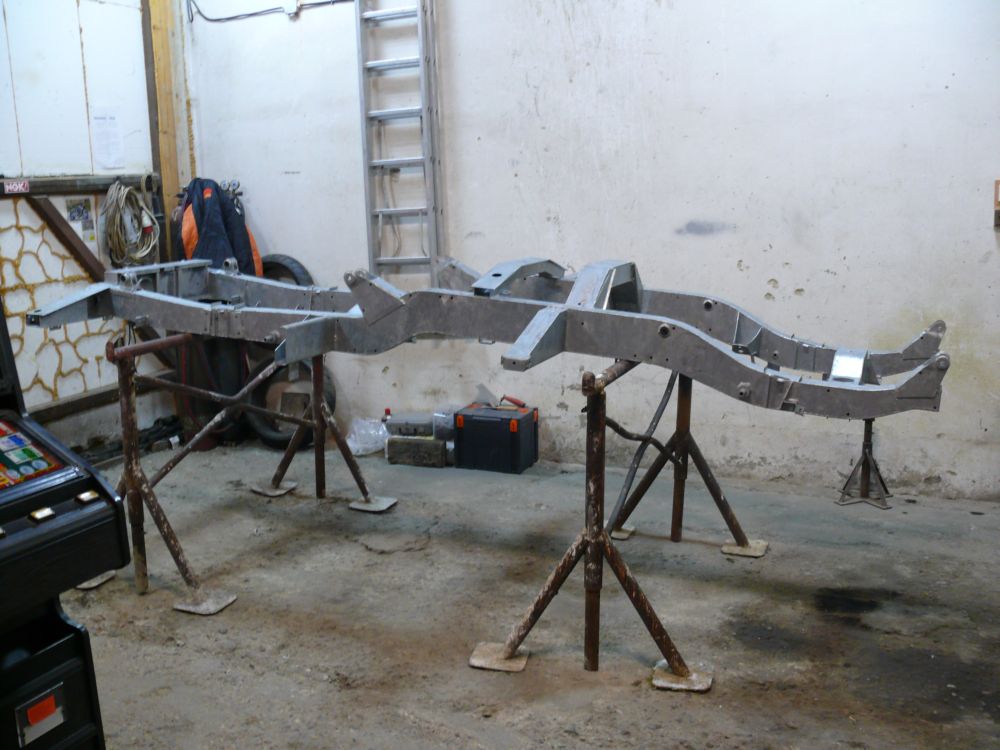 Pořád se jenom čistí, brousí, natírá, nakupuje spojovací materiál, stříhá a ohýbá plech a já nevím, co ještě všechno, ale že by to vyloženě rostlo před očima, to se říct nedá. Ale už se to aspoň dá tlačit po dvorku