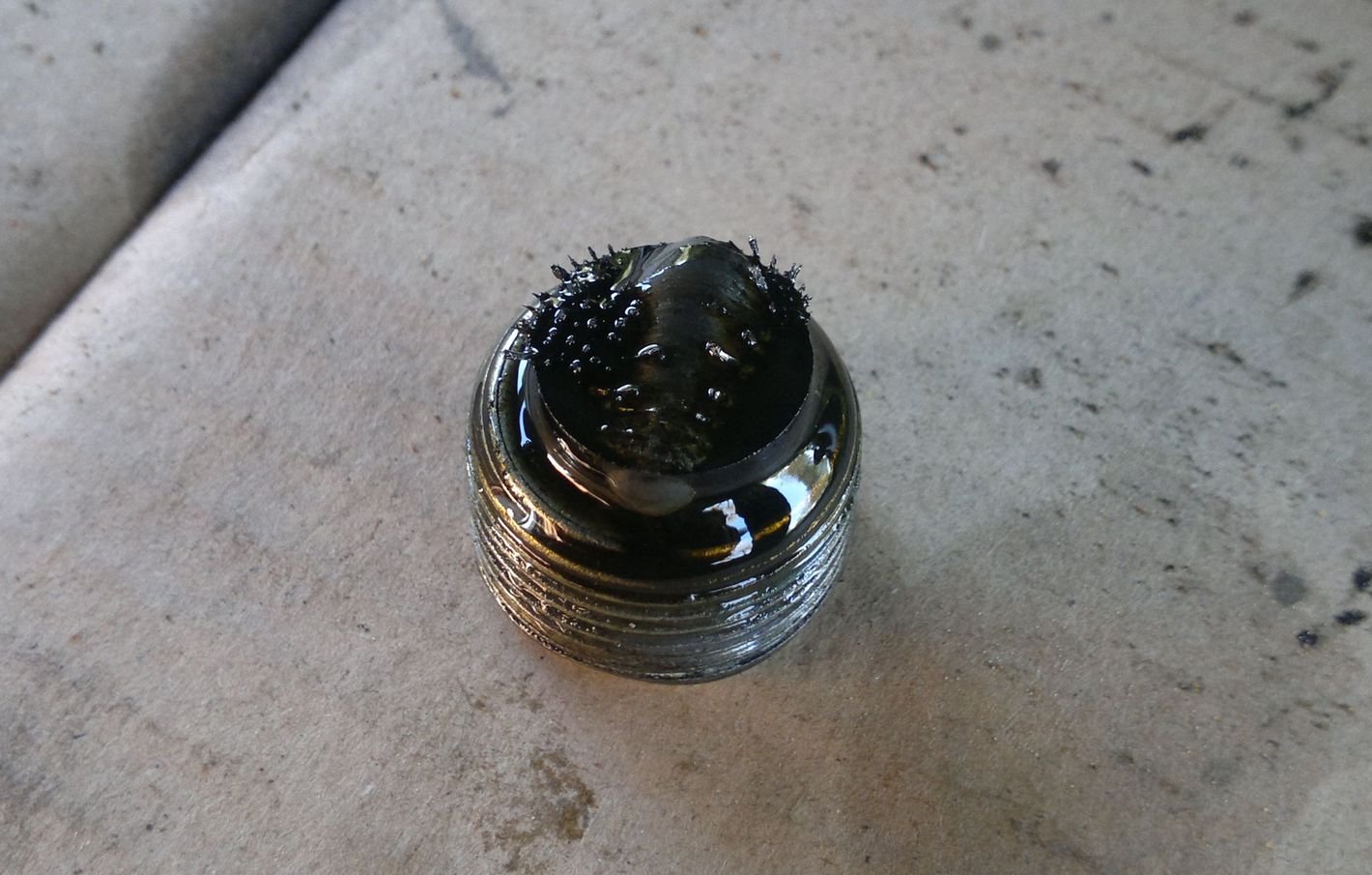Na vypouštěcí zátce přídavky byl magnet a na něm se zachytilo pár kovových šupinek. Nemám srovnání, ale asi to není žádná hrůza. Nebo mám být znepokojen ??
