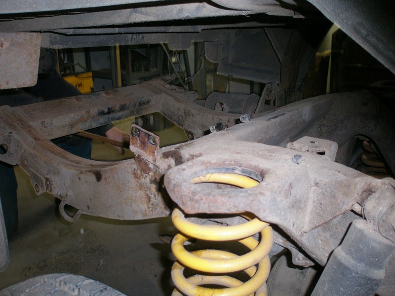 Tak dnes jsme oholili rám, jak se dalo. Šla dolů celá nádrž, všechny naftové i brzdové hadice, elektroinstalace, dorazy, cross-membery, turrety nad tlumiči, výfuk a další drobnosti a držáčky.