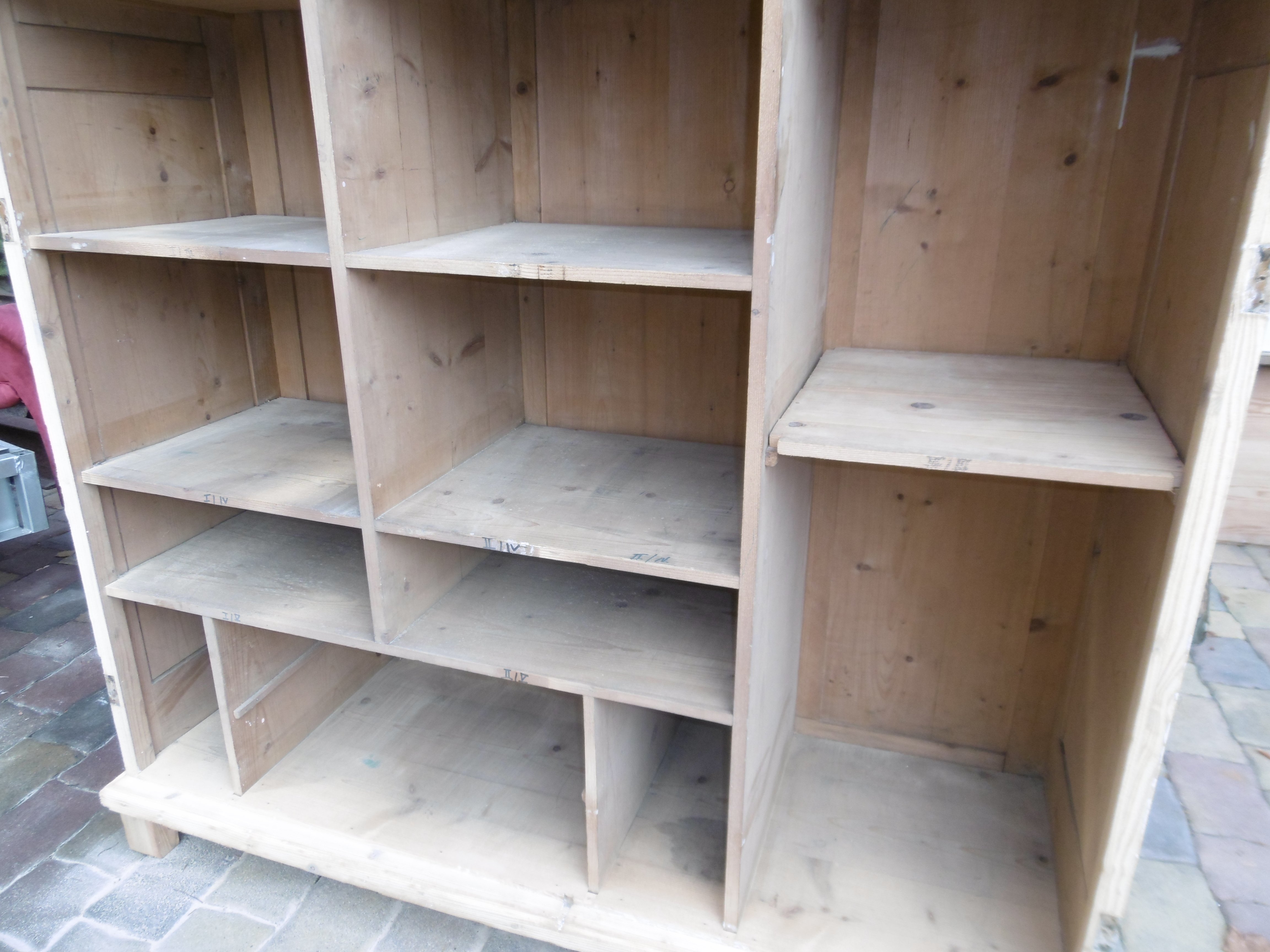 Veliký regal masivní smrk,odstraněny staré nátěry, bez povrchové úpravy, cena 4400 kč.