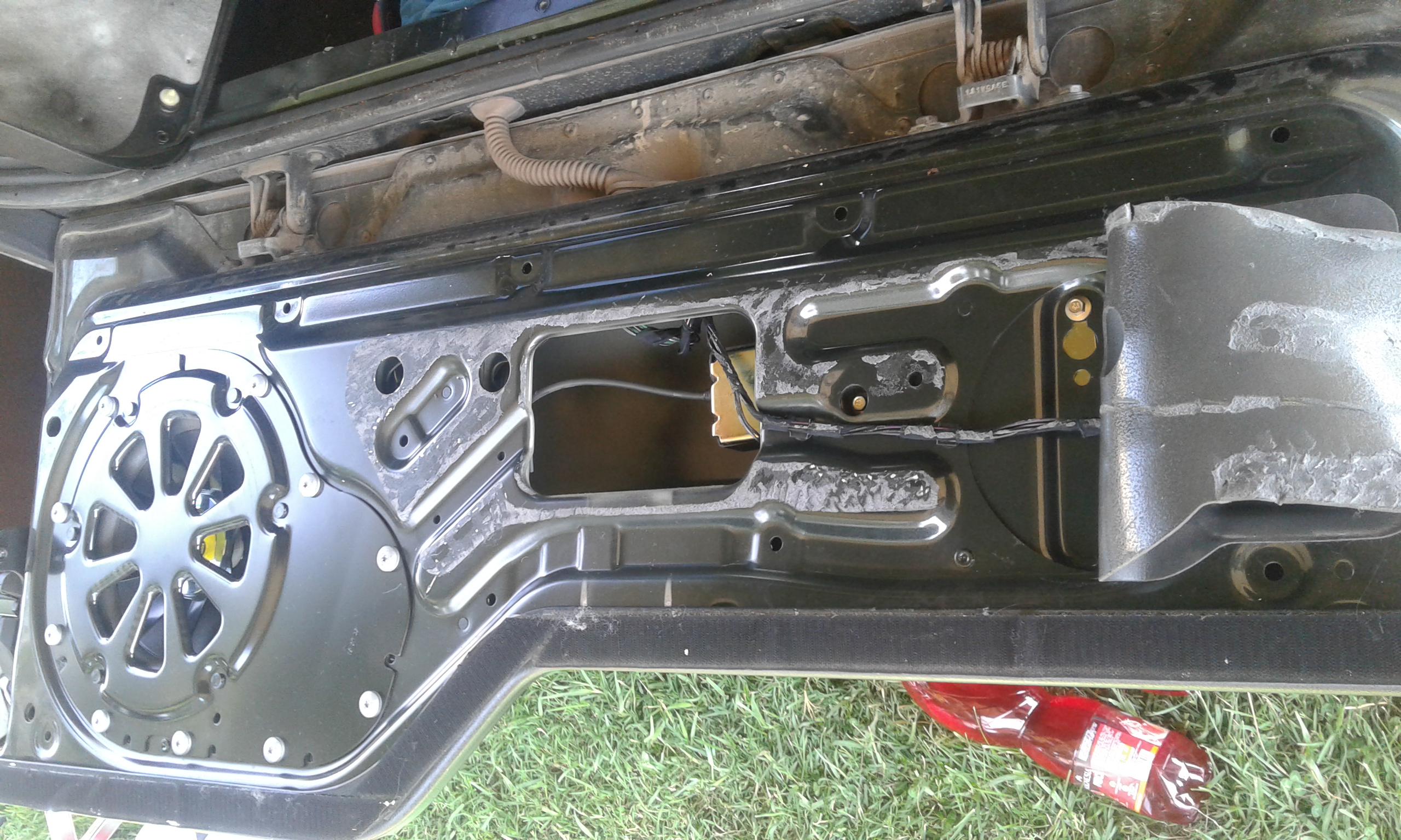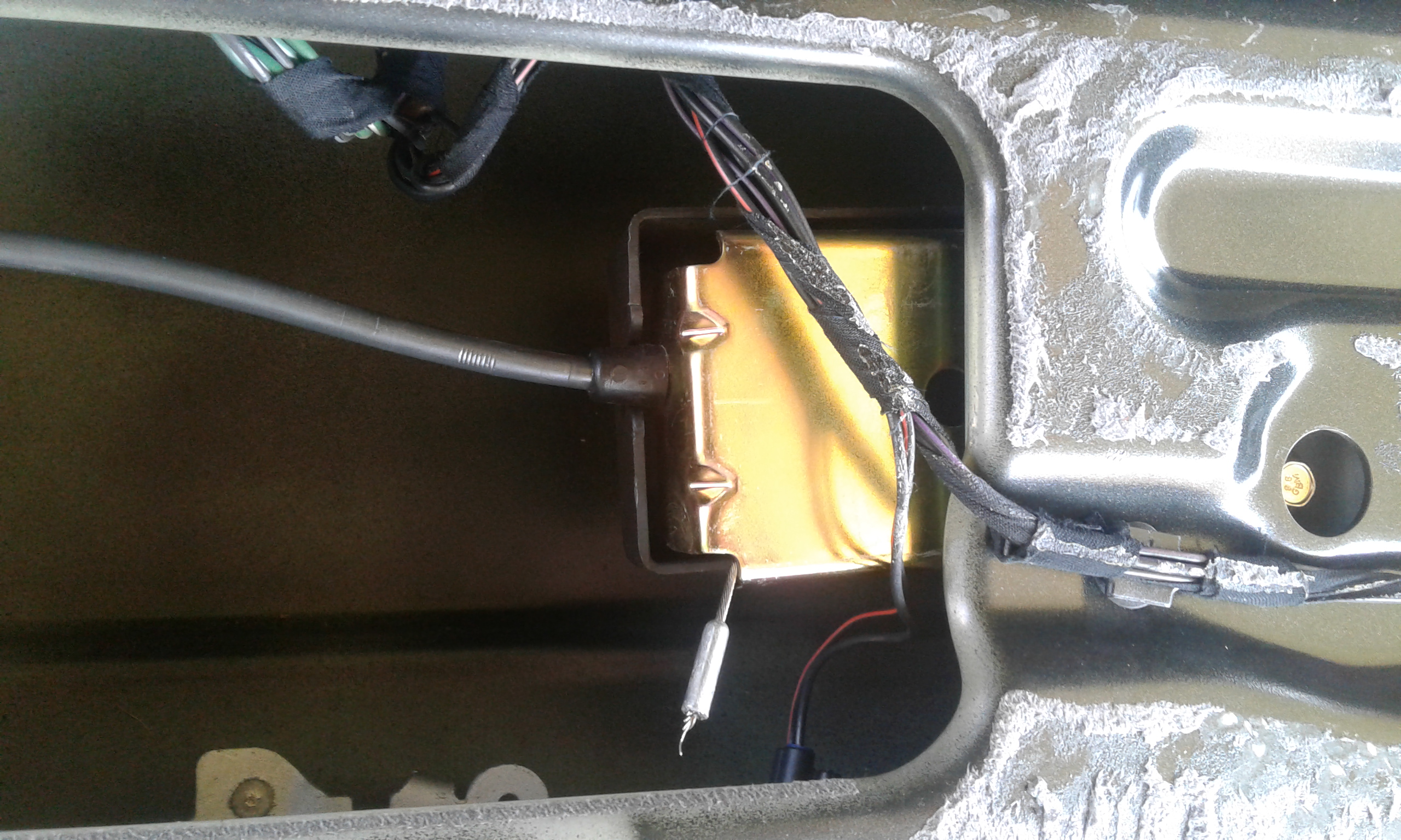 Ak sa chces vyhnut gynekologii cez odtiahnute polstrovanie, daj si pred ten hacik (co uz nie je na fotke) cokoladku a lanko tak ako mozes vidiet na spodnejsej fotke a vyved si ho cez polstrovanie do kufra. Mam to tak vyvedene a zakrytovane ciernym kuskom plastu, nic nie je vidiet a keby odisiel motorcek, tlacitko na otvaranie alebo hacik (pri povodnom uchyteni), staci zvnutra potiahnut za lanko a je otvorene.
