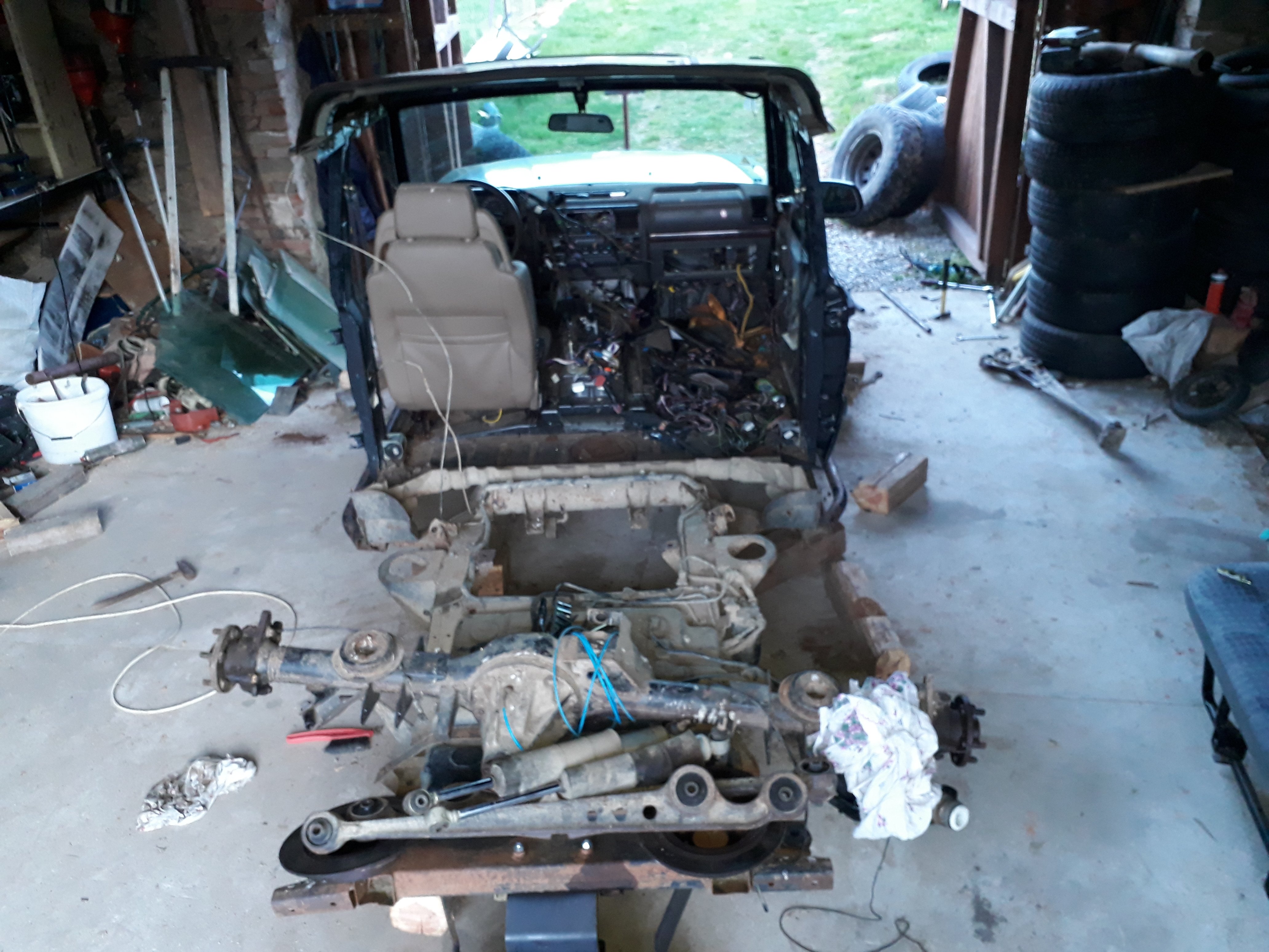 Už leží na bříše, nápravy off, ramena off, pera off, tlumiče off....Objevil se zájemce o spodní patro tohoto vozu a snadno jsme se dohodli.