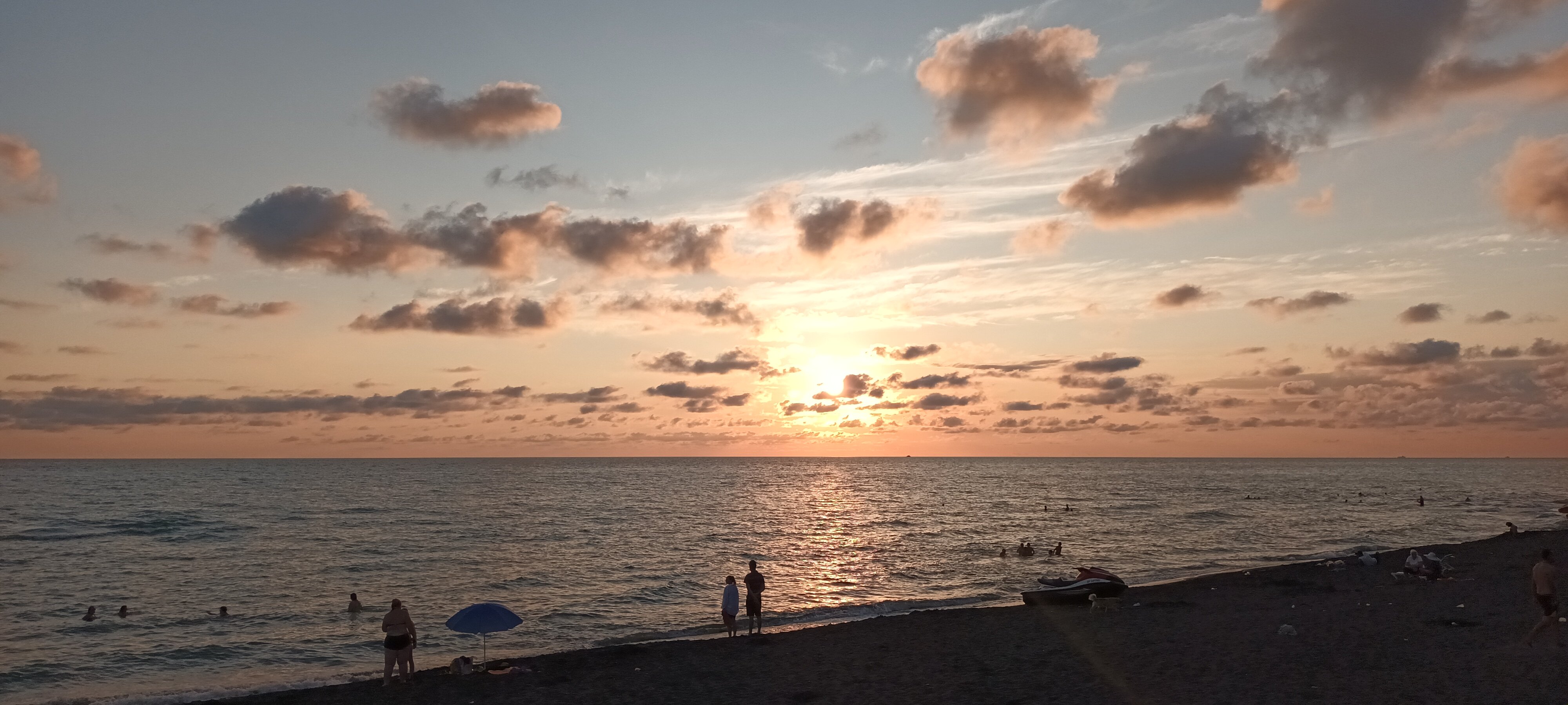 Západ slunce nad černým pískem Ureki
