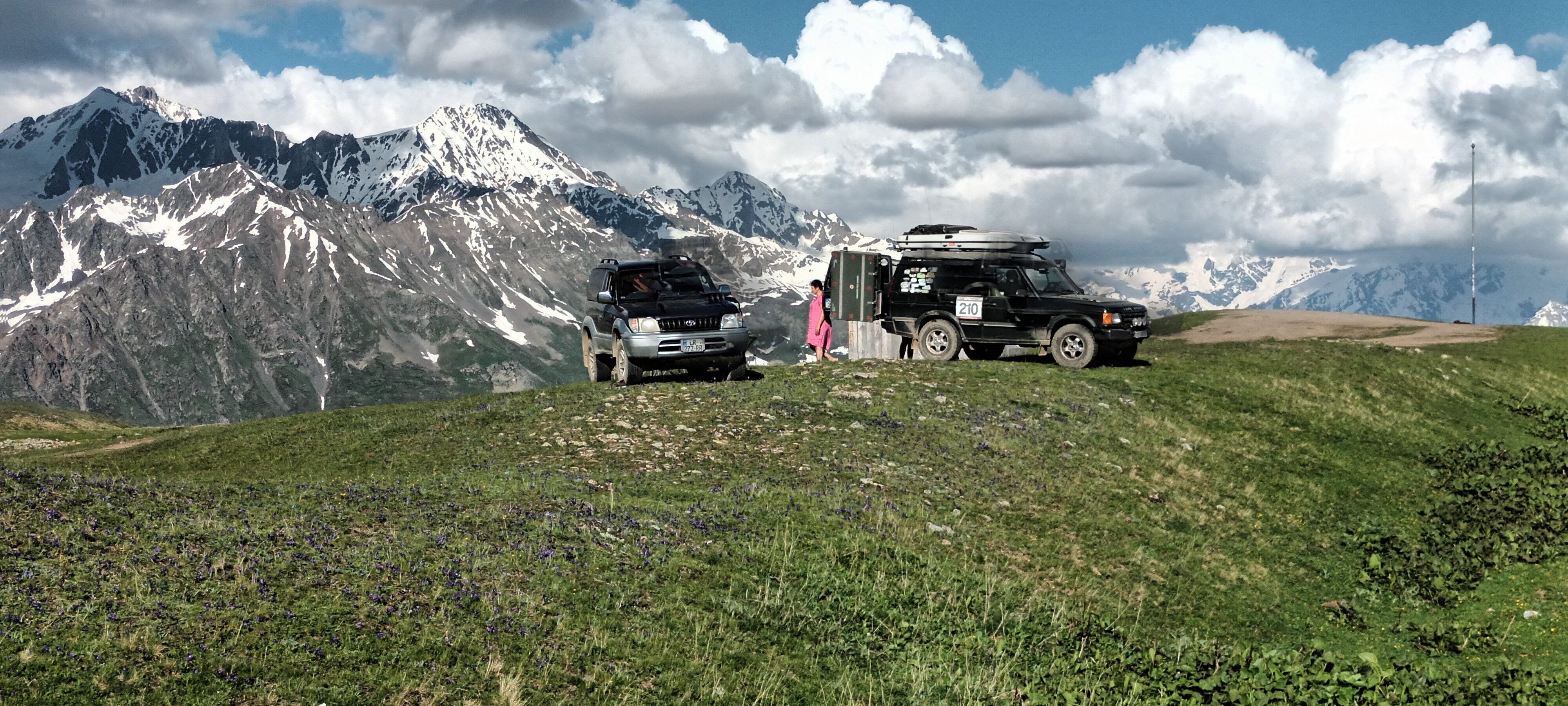 Ráno u moře teď je okolo sníh. Něco přes 2700 m u jezera Koruldi. Posledních 5 km redukovaná 1, na kopci auto tak rozžhavené, že nefungovala spojka.