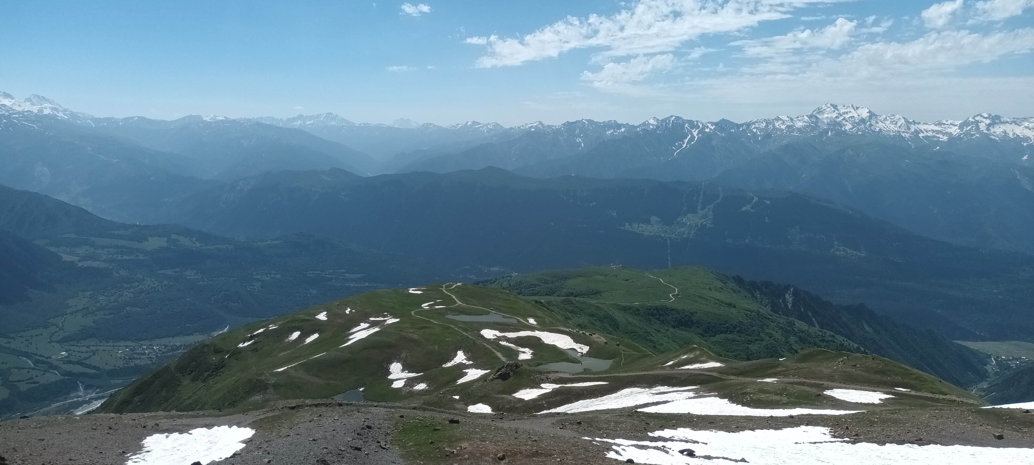 Včera jsme to ještě zkusili pěsky kousek nahoru od jezer Kuruldi. Šlo to rozumně do 3000 m, pak už byla sněhová pole hodně šikmá a okolo to bylo spíš suťoviště. Výhledy a panoramata ale úžasná.