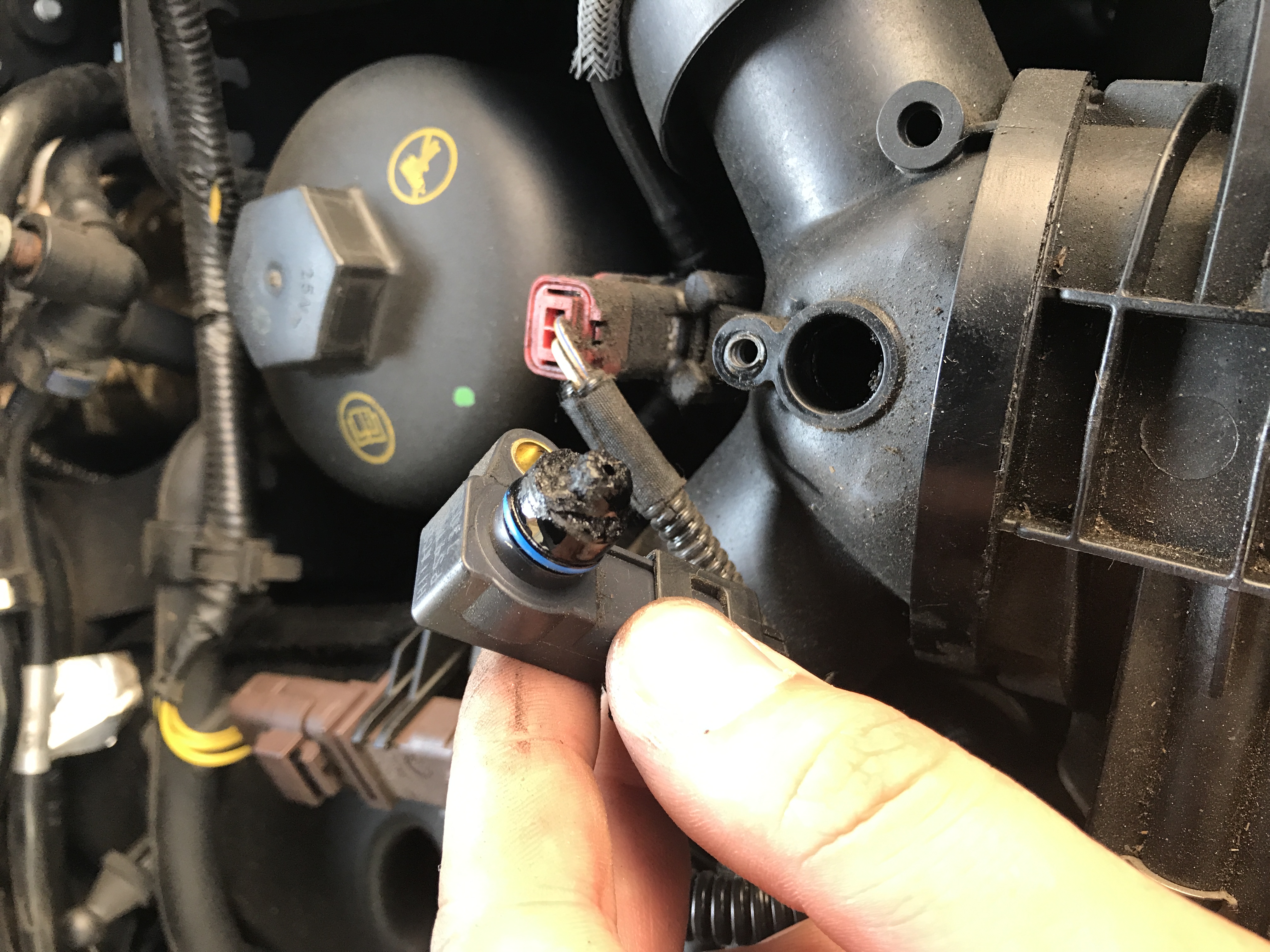 Takže odděláte kryt motoru a před olejovým filtrem je kus plastu, ke kterému vede kablík a je tam šroubek, šroubek odděláte a senzor vytáhnete. Pak už stačí jen senzor vyčistit zvenku a pak je důležité i trošku vyškrábnout vnitřek. Stačí aspoň lehce, ono když pak auto nastartuje tak se pročistí. Pak už jen smontovat a nastartovat. Je možné že auto nastartuje, ale bude pořád ukazovat F a hlásit chybovou hlášku. Tak aspoň kousek popojeďte, bude to chtít víc plynu, protože se to rozjíždí asi na 3-ku mi přišlo a po kousku zastavit, chcípnout a znovu nastartovat a hláška zmizí.