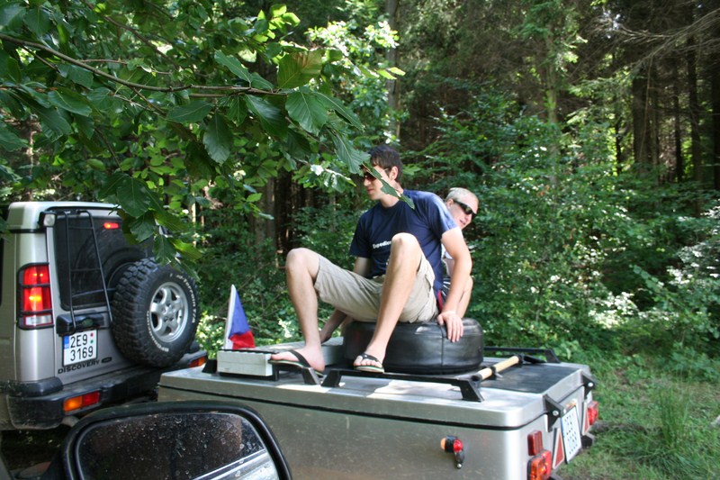 Cenu za celek si představuji okolo 25 tis. kč s nájezdy, držáky, kanystry, rýčem, oběma stany atd. Zkrátka za vše, co vidíte na foto krom rezervy z Disco. Kožený obal nechám k tomu. Cena může jít samozřejmě dolů, když si nechám doplňky - nájezdy, kanystry, rýč apod. Vše je o dohodě. Nebojte se poslat mi vaši nabídku, třeba se domluvíme. Různým dohodám jsem otevřený...
