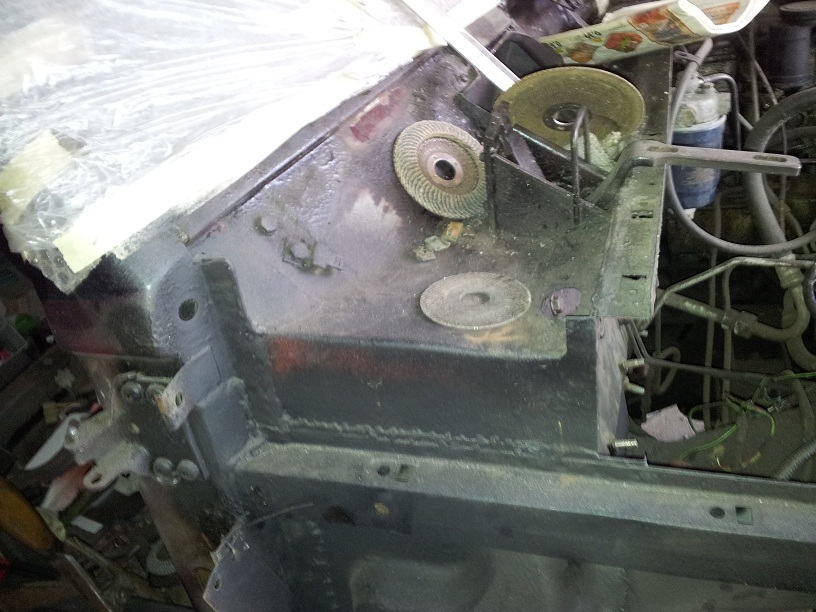 Kamenom urazu je karoseria. To ze tieto auta hniju som vedel, napriek tomu ma rozsah korozie zaskocil. Navyse karoseriu uz niekto velmi fusersky opravoval. Diery su preplatovane novym plechom, pricom stary, zhrdzaveny nebol odstraneny. Medzi plechmi sa teda drzala voda, co len urychlilo dalsiu koroziu. Kopec drobnosti nema dodrzany tvar (rozne uchyty blatnikov a pod.). Vrcholom vsetkeho boli diery pod celnym oknom - "majster" klampiar sa bal pouzit zvaracku (asi aby neprasklo okno) takze tam novy plech nanitoval a cele to pretrel lepkavym gumoasfaltom. To ale nezabranilo zatekaniu do kabiny. Aby neboli koberce mokre, vyrezal tlmiacu hmotu pod nimi a nahradil ju nenasiakavou variantou - handrou zalepenu v igelitovom vreci.