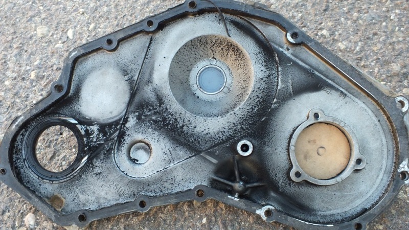 Pokud se nepletu, kdyžtak mě opravte. První modely měli spodní pohonné kolo bez vedení a jako vedení byla jedna napínací kladka. Když nědko neznalí vymění rozvody tak tím pádem vymění i tu vodící kladku a pak se stane tohle. Nevím jak dlouho ty rozvody jsou udělané ale pokud třeba jenom pár tis. tak bych dal nové to spodní pohonné kolo (to co je klice) s guferem mezi motorem a kolem, nový řemen a jezdil bych dál do plánované výměny. Kryt bych neřešil. možná taky jenom nové gufero.