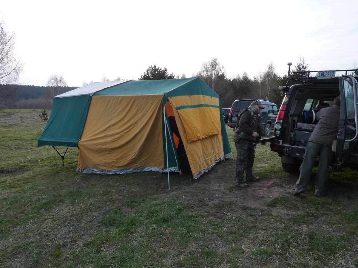 Stan je klasickej látkovej, takže při předpokladu velkého deště jsem ho přetahoval velkou plachtou - potom tam doopravdy neteklo.