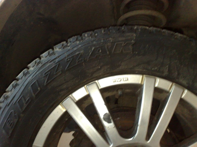 druhé jsou gumy Bridgistone Blizzak DM IV. Rozměr také 215/65 R16 Vzorek je 8/9/9/10mm. Jeté jsou dvě zimy. DOT 11.
