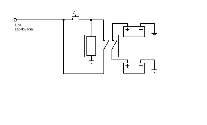 nakreslil som jednoduchú schému prepojenia batérii pomocou viackontaktového relé, a s manuálnym spínačom...