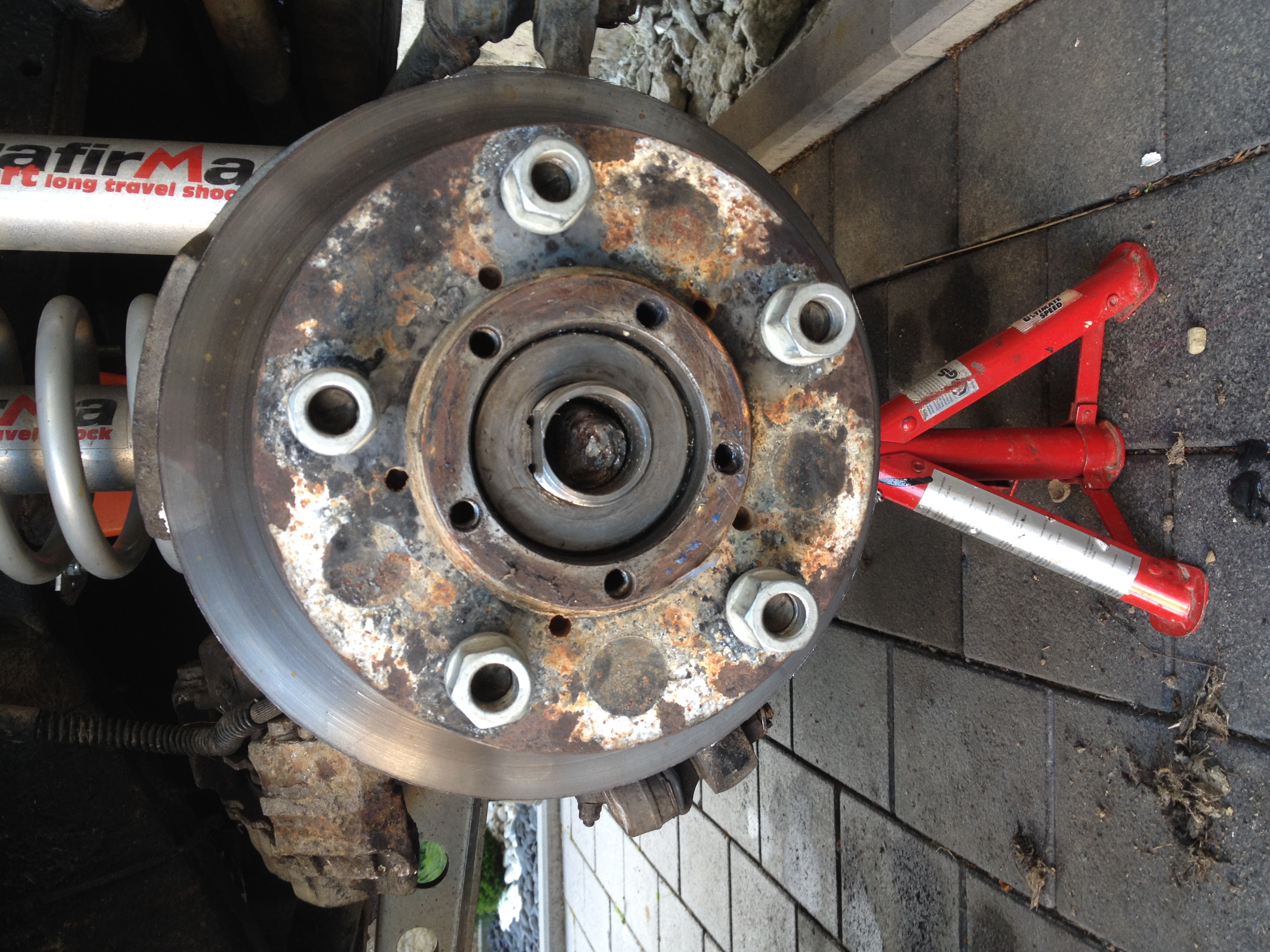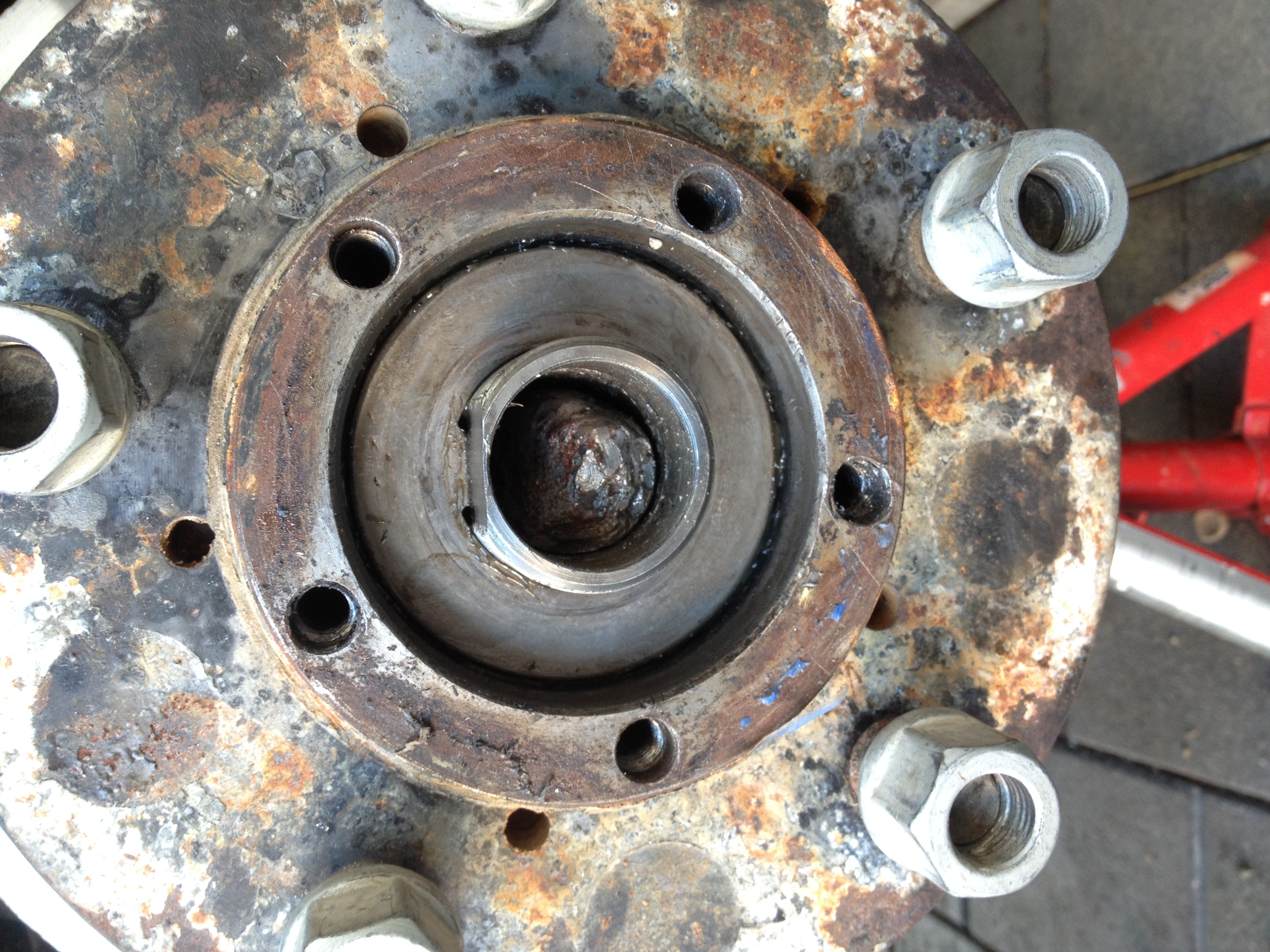 no tomu to šlo krásně dolů.... mi to připadne jako kdyby se mi ta podložka sekala za ten závit - jde to jen 2 mm tam a 2 zpět..... Miky CZ poradil sundat celý náboj hned za rejdovou koulí (povolit těch 7 šroubů) a pak to vyklepnout na ponku.... tak zkusím s tím ještě zacloumat a když nepůjde budu muset to řešit takto?....