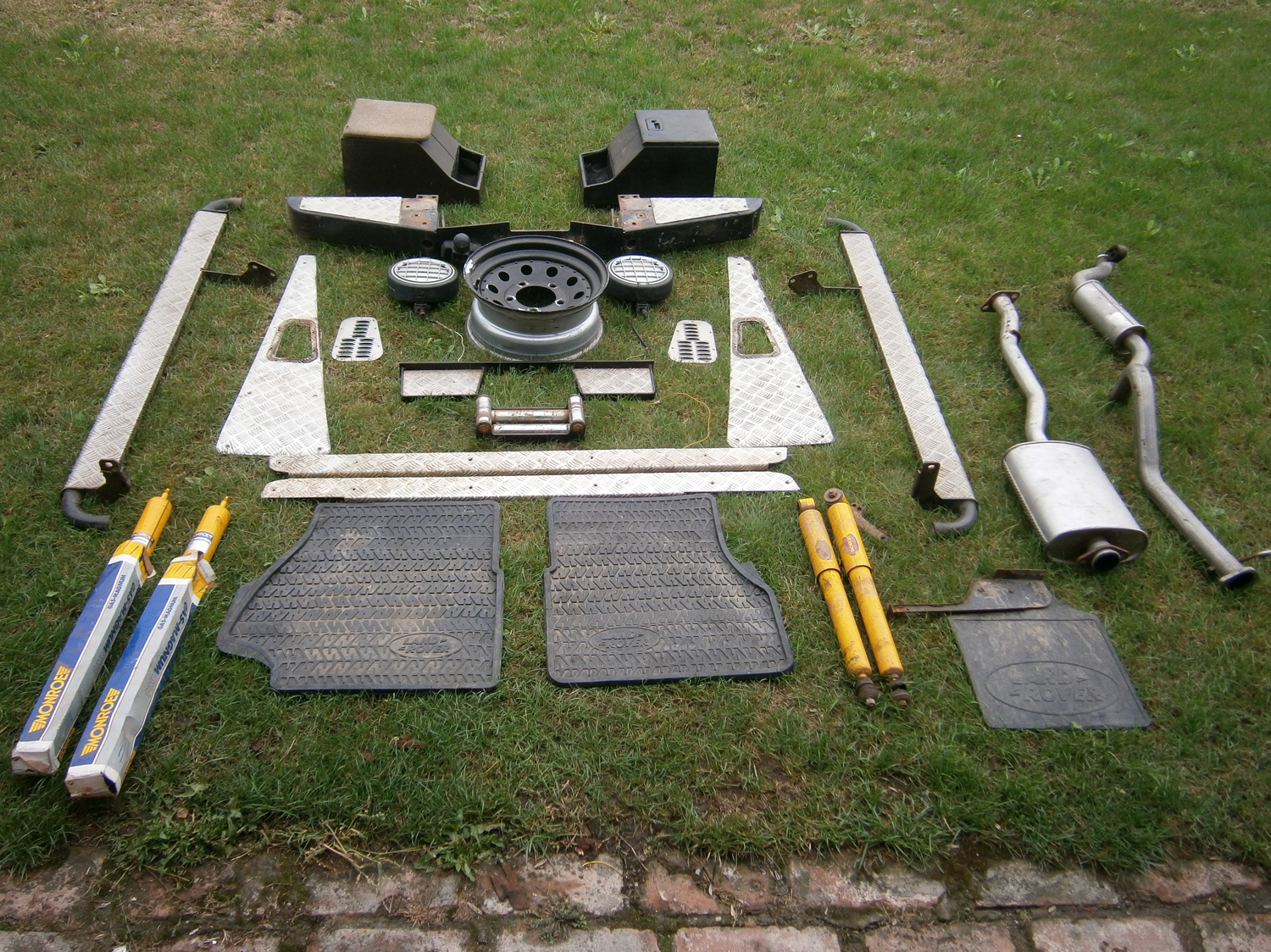 Aktuálně zbývá: cubby boxy - černý 1000 Kč, látkový 1200 Kč, tlumiče přední nové 800 Kč/ks, zadní 600 Kč/ks a ochranné kryty prahů pro 90ku, original LR, 1500 Kč/pár.