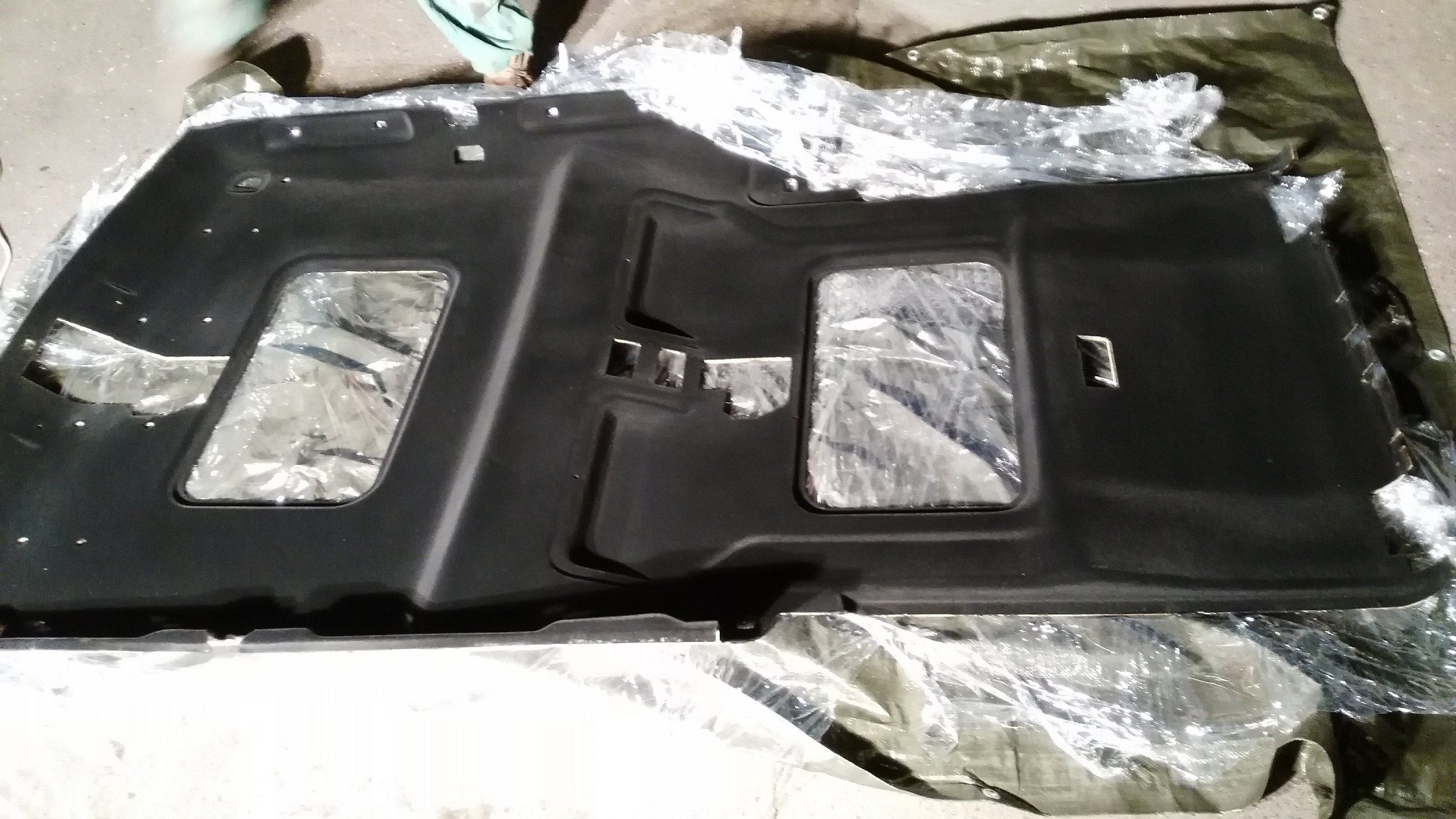Kamarád "tuner", co tuní břichoplazy tím potahuje i palubky, což mně osobně nepřijde moc vhodné kvůli prachu. Ale na tom stropě to je ok.