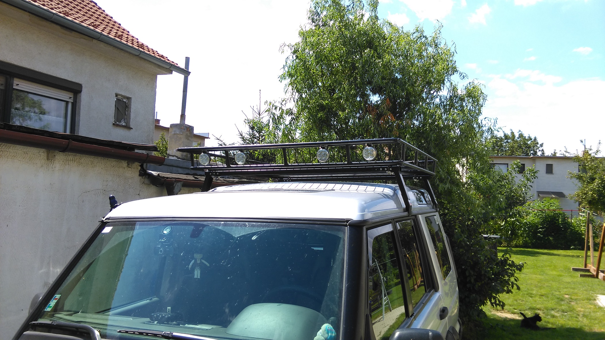 Predám strešný nosič ( záhradku ) 145x145x13cm aj s LED svetlami ( 4x predné ďialkové/pracovné a 2x zadné cúvacie/pracovné ) a priečkami. Priečky ( od mp4x4.pl ) sú šírkovo nastaviteľné, pre vozidlá so strešným žľabom ( fotené na Land Rover Discovery 2 ). Cena za komplet 300,-; bez priečok 200,-; len záhradka bez priečok a svetiel 150,-, poprípade dohodou. Vzhľadom k rozmerom a váhe len osobný odber.