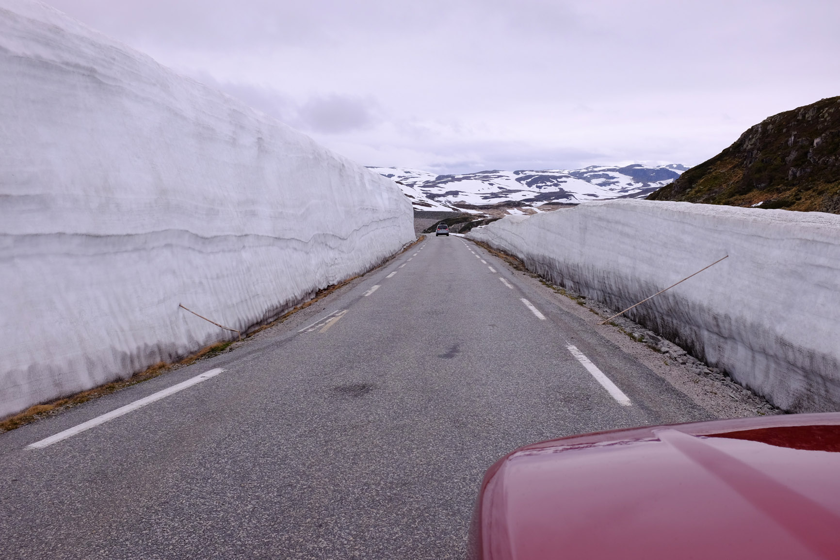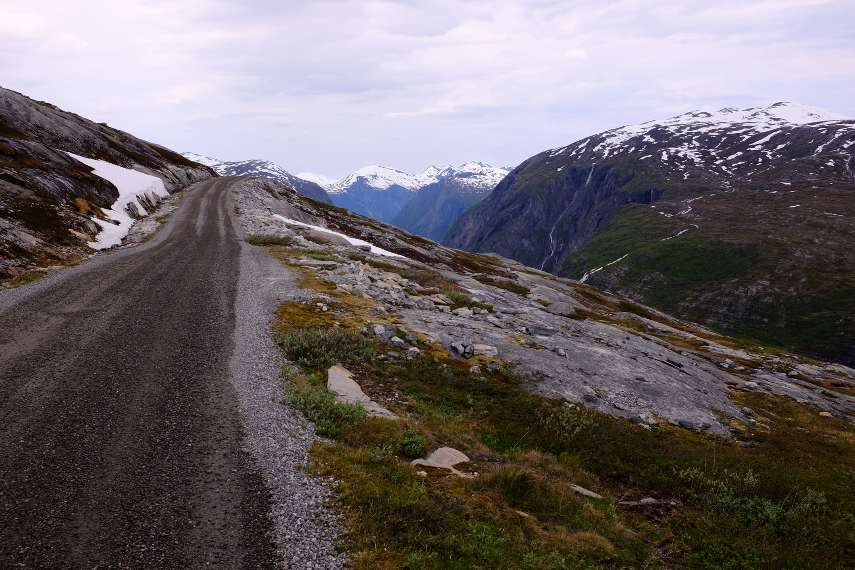 přiznám se, že také nemám zkušenost, že by mě někdy Norové kontrolovali. Jinak šotolinových cest je v Norsku hodně, oni něco jako naše silnice III. třídy obvykle neasfaltují. Není to žádný offroad, je tam rychlostní limit 80km/h a často se po tom i tolik dá jet. Naposledy jsme také pluli do Larviku a tam dole se nám moc líbila silnice č.45 z Nottodenu k Frafjordu (na západ k moři). Bylo tam ještě začátkem července dost sněhu. 10 dní i z cestou je na Trondheim jen tak tak. E6 využívej jenom v nejnutnějších případech, Norsko je nejkrásnější projíždět po těch zapadlých silničkách a šotolinovkách. Hezká byla cesta od jezera Eikedalsvatnet do Sundalsory - skoro 80km po šotolině.