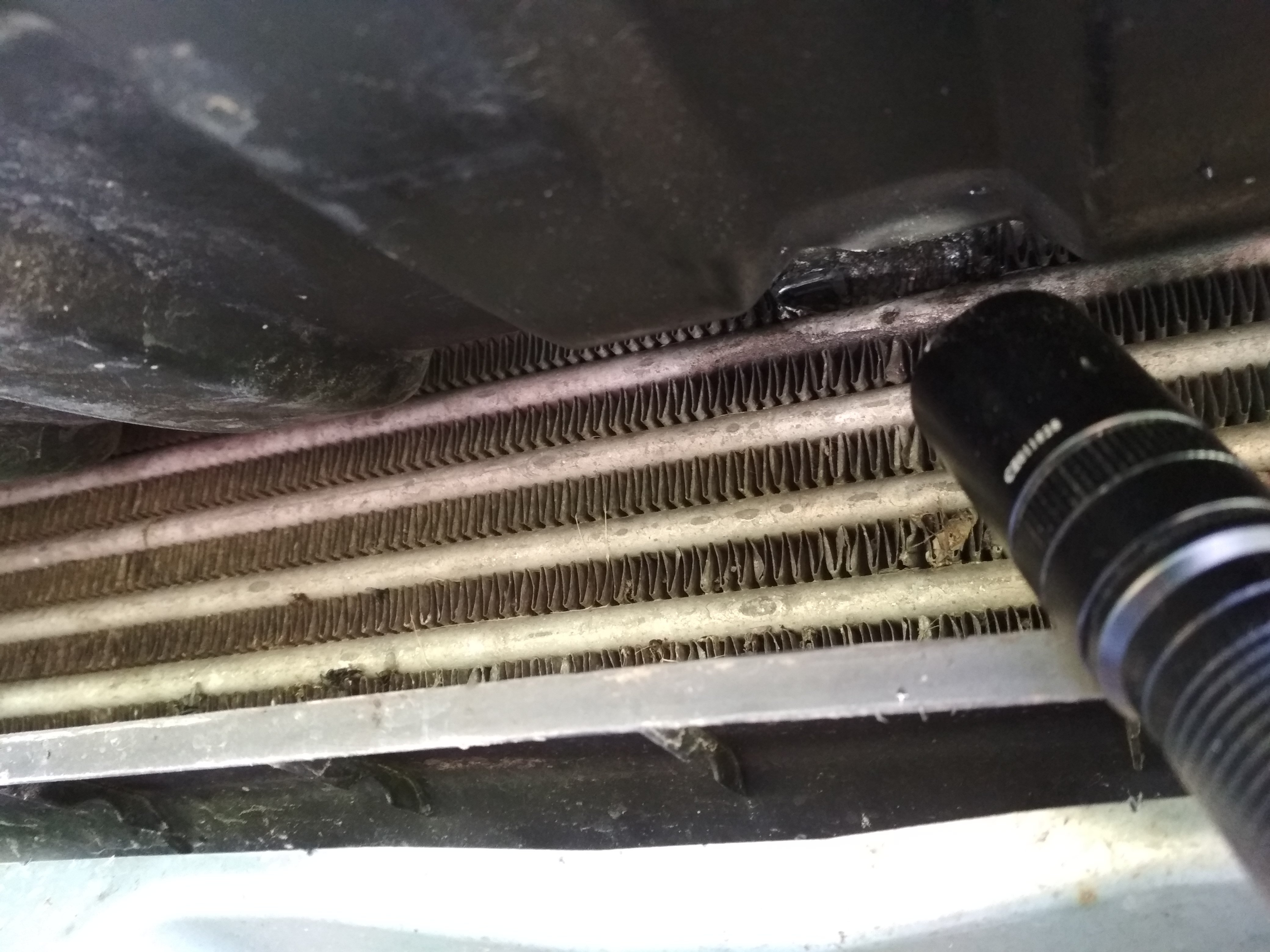 Nedávno jsem při upevňování krytu tažného oka na své D3 zjistil, že mám zepředu v intercooleru díru, do které se mi vejde prst. Nevím, jak moc hluboko je, jak a kdy vznikla, ale je tam (asi od nějakého klacku, když jsem jel někde kousek bez krytu? nebo je to něčím propálené? ). Snažil jsem se to trošku vyfotit, ale moc to nejde.