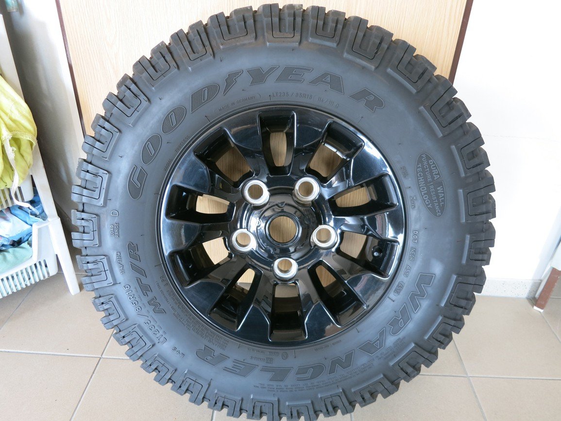 Prodám 5x Orig. Alu disk na Defender SAW TOOTH 16" černé, s novými pneu COOPER DISCOVERER A/T 3, disky bez jediného škrábanečku, vše nové sundané z nového vozidla, nejvyšší model kol na DEFENDERA.