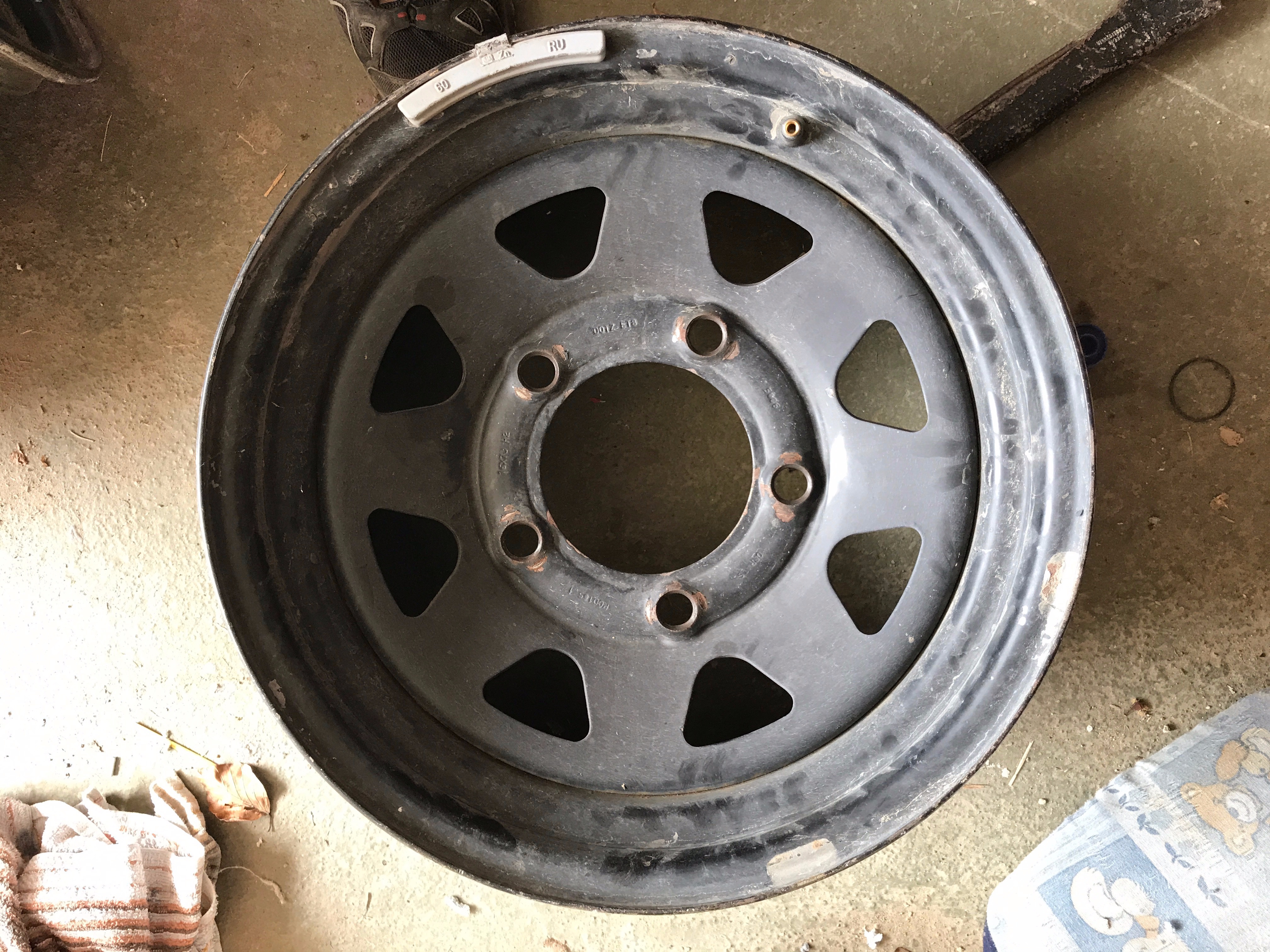 Pokud je to ještě aktuální, mám plechové disky R16 5x165,1 ET8 6,50 středová díra 124mm. Jsou po novém laku, najeto ani ne 500km a pneu Nexen Radian A/T 235/70 R16, vzorek 5,5mm - 6mm na dojetí, dvě mají líznuté kraje kvůli špatné sbíhavosti.ObrázekObrázek
