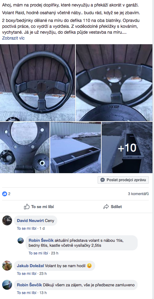 Pánové omlouvám se, že odepisuji se zpožděním a vidím, že mě tady spojky na fb už předběhly :grin: ... zatím vše zamluveno byl to šrumec. Předtím se totiž na to nikdo tady moc neozval, tak jsem to dal i na fejsbuk. Kdyby prodej padl, budu vše aktualizovat!