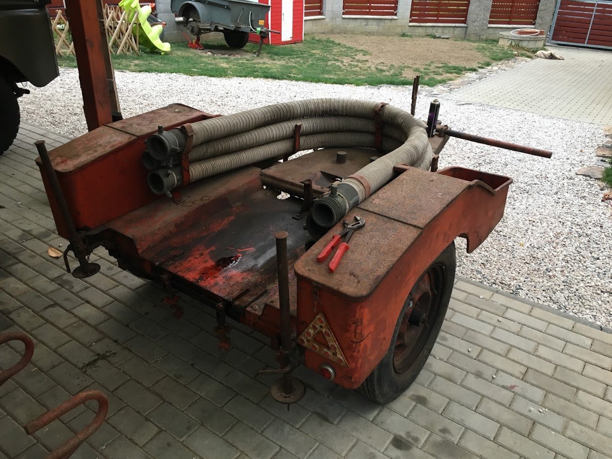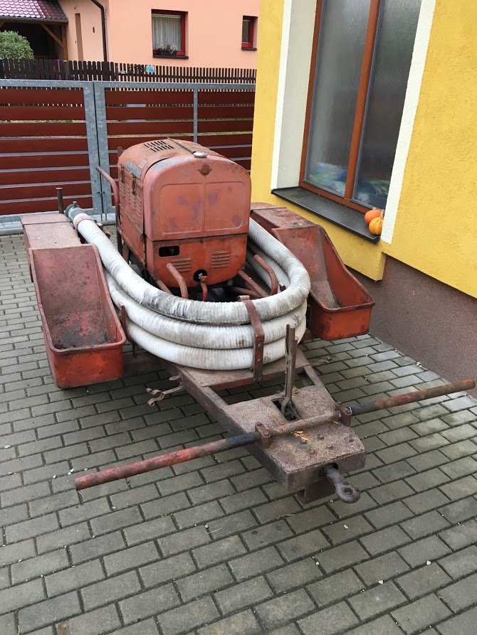 Hasičská stříkačka Coventry Climax "Godiva", typ FSM. Motorová stříkačka z 30.-40. let 20. století na původním přívěsu firmy Iso Speedic. Benzínový čtyřválec o objemu válců cca 850 cm3, vyráběný firmou Coventry Climax původně pro firmu Swift Motors. Po bankrotu Swift Motors byly motory využity pro vlastní hasičskou stříkačku. Motor krásně běží, tlaky OK, repasované magneto, nové kabely ke svíčkám, nové svíčky, opískované a nalakované disky, nové pneu Excelsior 5.50x16. Původní savice, jedna nepůvodní hadice pro výstup z pumpy. Chybí záslepky přívodu/vývodu pumpy, proudnice a sací koš - lze dokoupit v Anglii, objevují se na prodej. K přívěsu je nepůvodní sací koš (čtyřpalcový, nepasuje na třípalcové savice) a navíc tažné oko normy NATO, které lze případně přivařit místo původního oka "traktorového" rozměru.