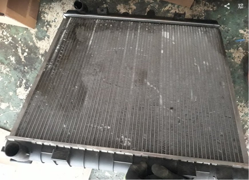 Měchy jsou funkční, neprotržené org. LR, čidla jsou též funkční (u jednoho je třeba svařit tyč nebo sešroubovat), tlumiče nejsou vytečené, jen u jednoho zadního v něm cosi cvakalo, ostatní tlumiče ok. Kladka vodicí na V8 jedna úplně nová, druhá původní s vyměněným ložiskem. Disky 16" (8x16 na pneu o šířce 255 mm), na foto jsou 4 ks, doma ve sklepě mám 5. kus (vizuálně stejný jako ostatní), jsou místy odřené, určitě nevoní novotou, ale na autě neházely. Chladič je ok, neteče, není nikde prasklý, původní klasika na V8, žádný závodní apod. Zahrádka - tam není moc co popisovat, spoiler pod přední nárazník nepoškozený, v sáčku je spojovací materiál (plastové nýtky), přední kardanka (V8 automat) - převážená a dříve měněný křížky. Poslední v sáčku jsou světýlka na osvětlení tlačítek.
