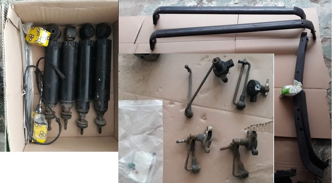Ceny: (měchy zadní 2 ks 1500, čidla 4ks 3000, disky 5ks 16" 10000, kardan 1500, chladič 1000, tlumiče 1500, zahrádka 2000, vodicí kladka (nová + stará) 500, všechny nový díly dohromady 2000), jako komplet nechám za 20000 Kč + náklady na dopravu nebo možnost osobního vyzvednutí v Brně.