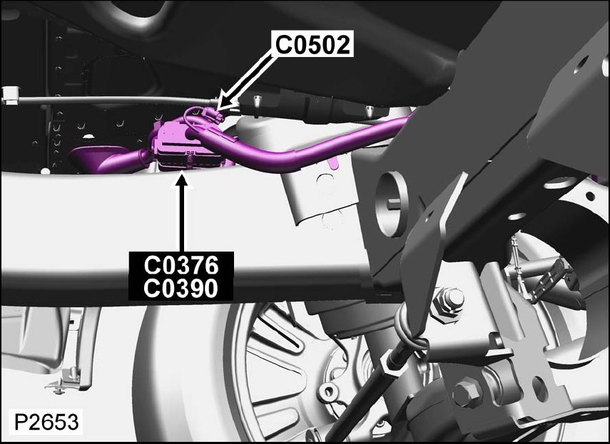 Ďalej som sa zameral na prepojovací konektor (C0376/C0390 ) medzi karosériou a podvozkom (za čiernym plastom zadného ľavého kolesa).