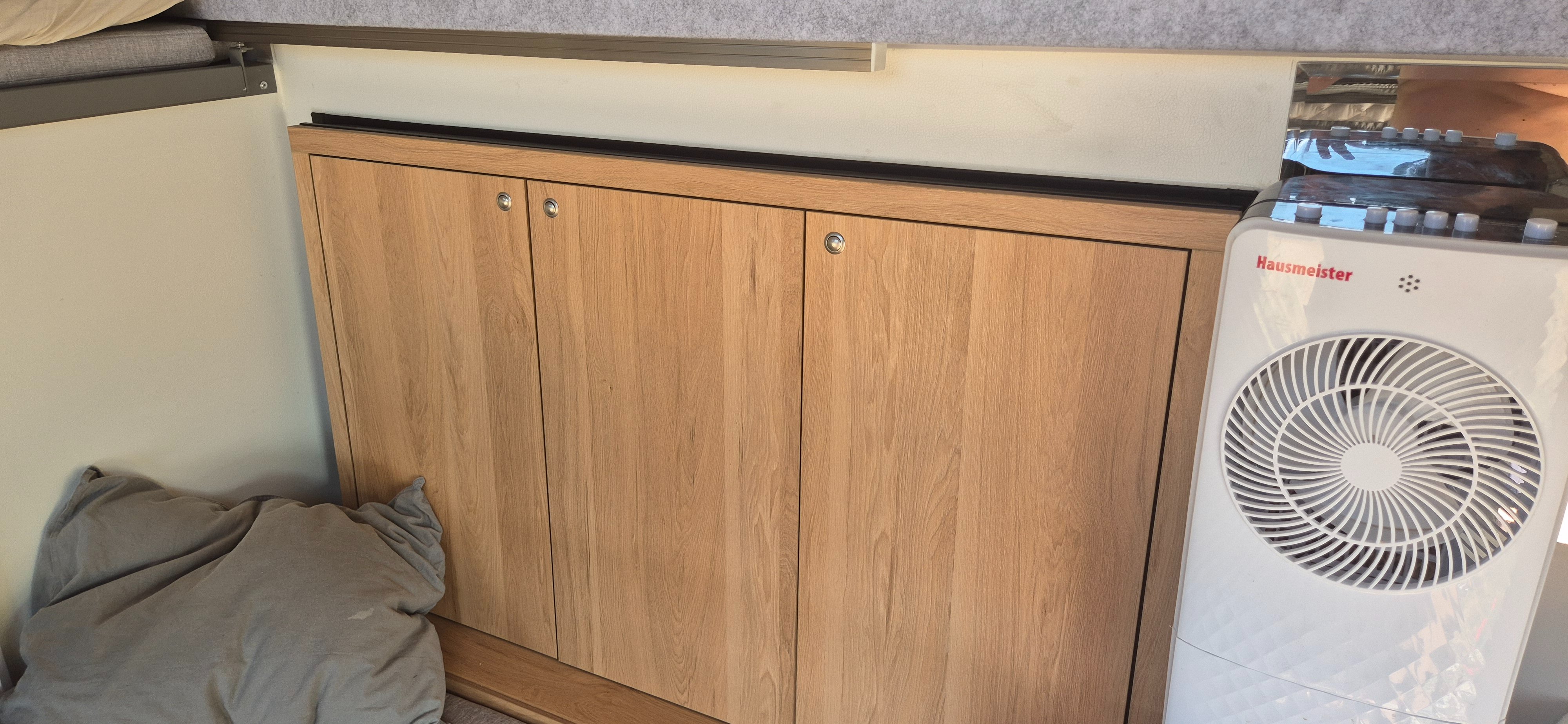 Je tam bordel. Jsme pryč. Takže jsou tam 600w solary, 200amp baterie 2000w měnič napětí. Led svetla, vetrak který funguje i jako digestoř. Postel nahore 2x1,8m druhá dole 1,5x1,8m (rozlozitelna na stul), plynový sporák s umyvadlem, vnitřní sprcha....