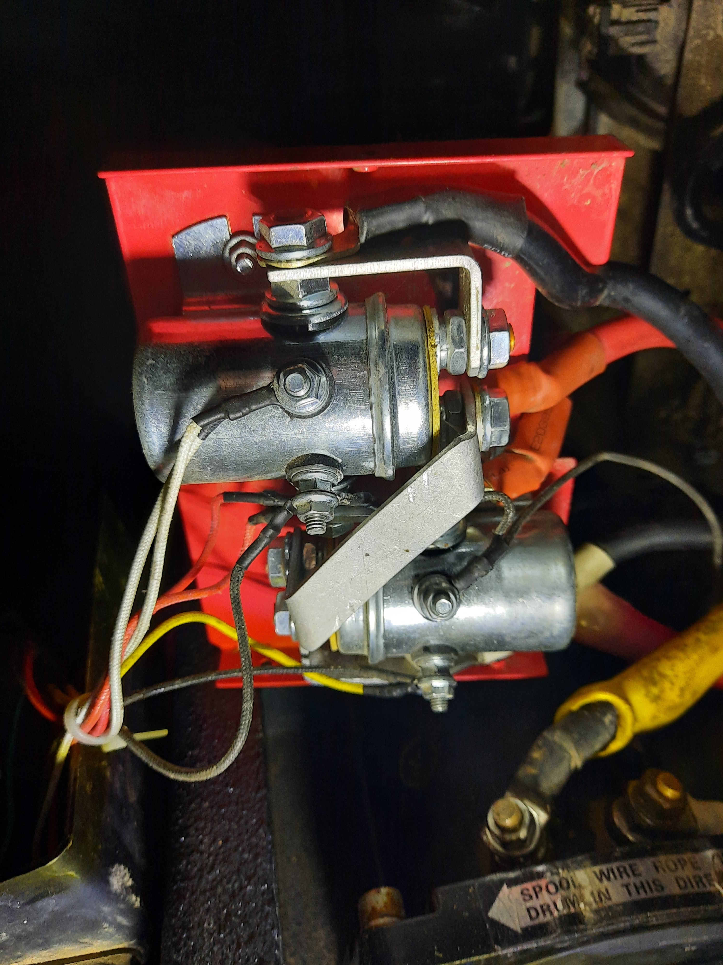 Naviják na 12000liber už mívá motor 4,5kW a víc. To už je proud kolem 400A, takže solenoidy určitě aspoň na 500A. Ne-li víc pro větší spolehlivost. Ovšem je otázka kolik je tam místa....