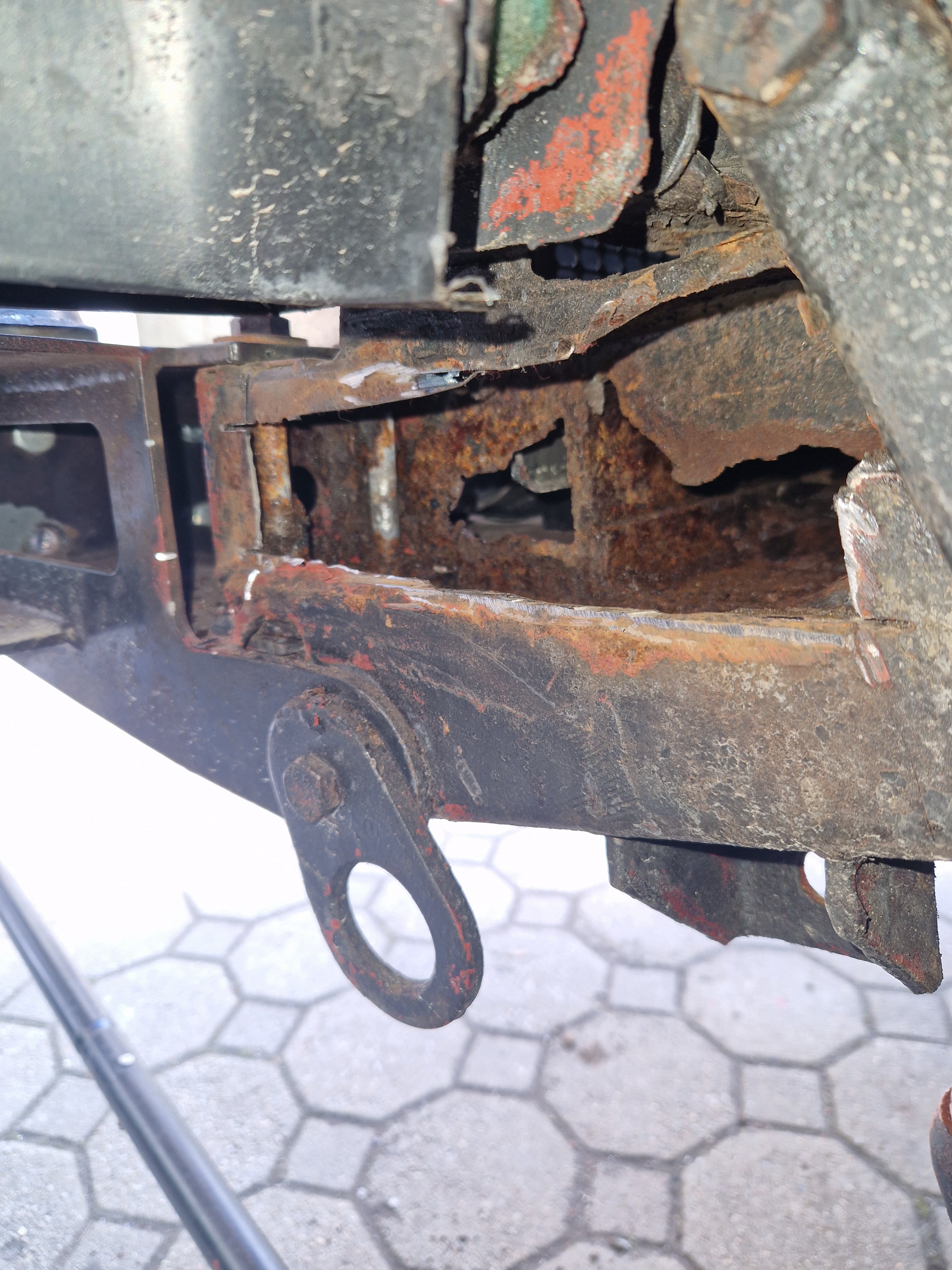 Hlavně zjistit, kam až je to moc zrezlé a jak moc to bude nutné odstrojit, aby se k tomu dalo dostat flexou a svářečkou. Zvlášť k vnitřní straně rámu.