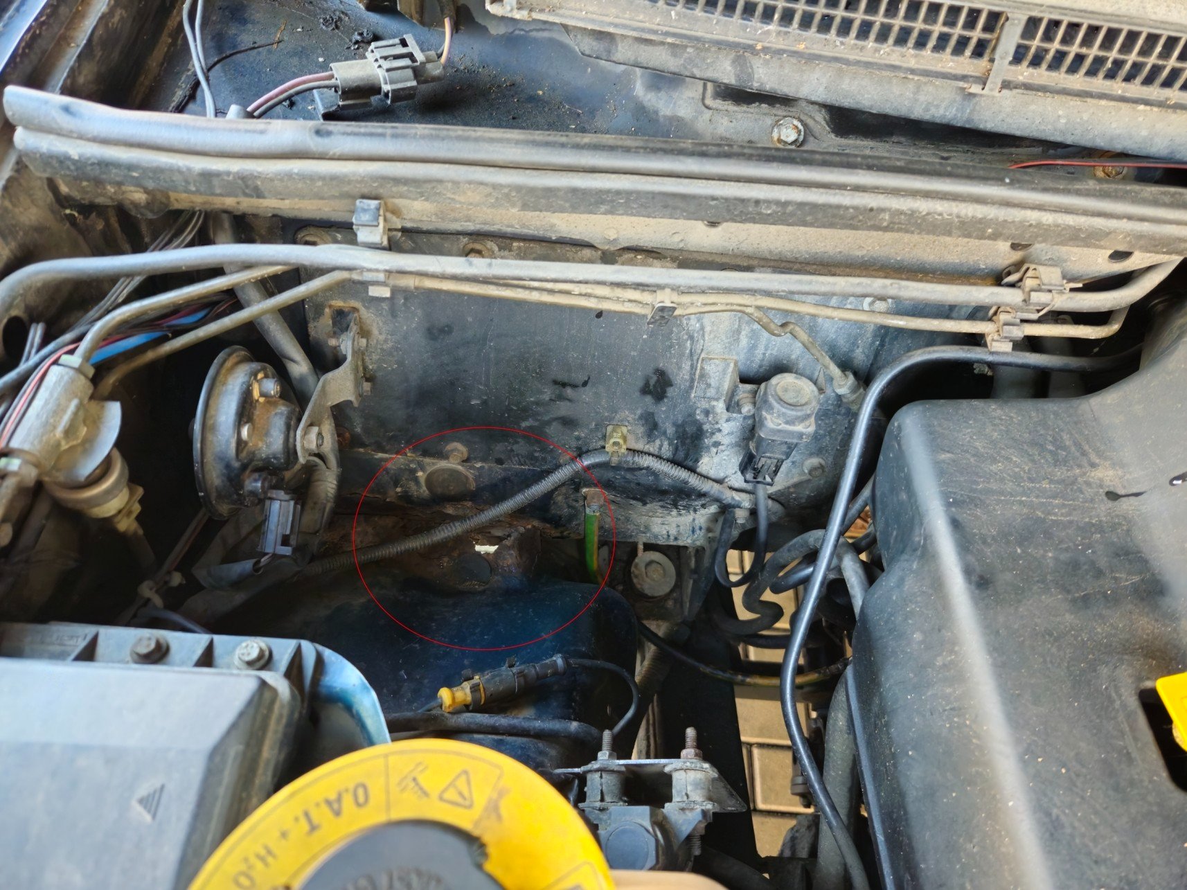 - kastle je jednom místě v motorovém prostoru prorezlá (viz foto)