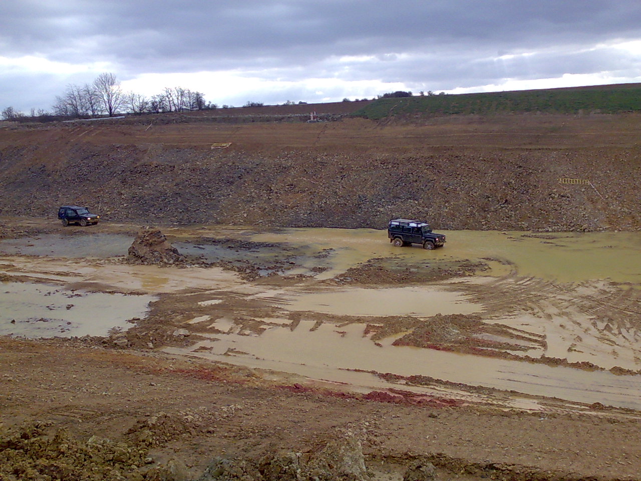 komentar k Fafovym fotkam - v tom rybnicku nejdrive jenda za volantem myho defika a se mnou zachranujeme Petru, ktera po odbornem vedeni od jaryse se zakopala, a pak i nas musi popostrcit Lucka s Jendovym defikem, docela pekna show