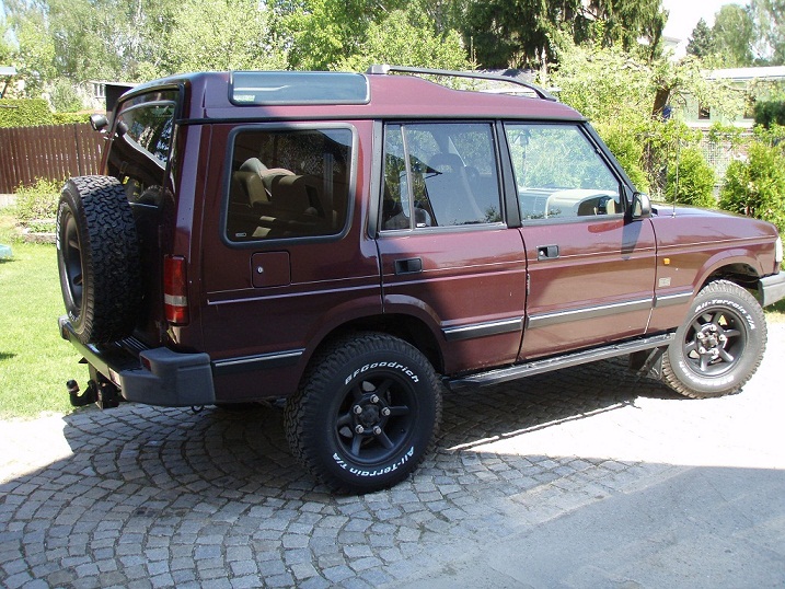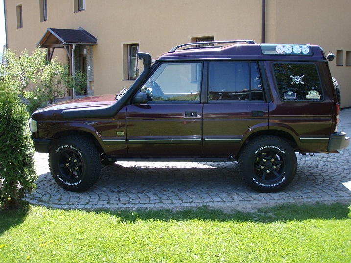 Discovery 1995 300tdi: 2"lift, BFG MT+USSR MT, navíjedlo RAMSEY, pevnostňák přední+zadní, prahy, šnorch by Hubert, hafl mrkadel :-) ex. zahrádka, střešní alu box, rejček, kryty difů, CB, lednice a ložnice :-)