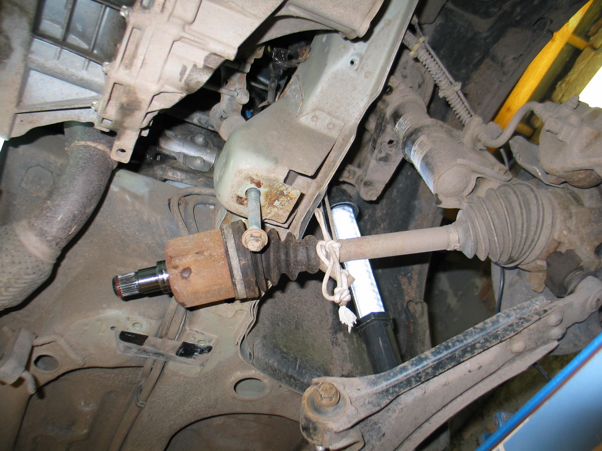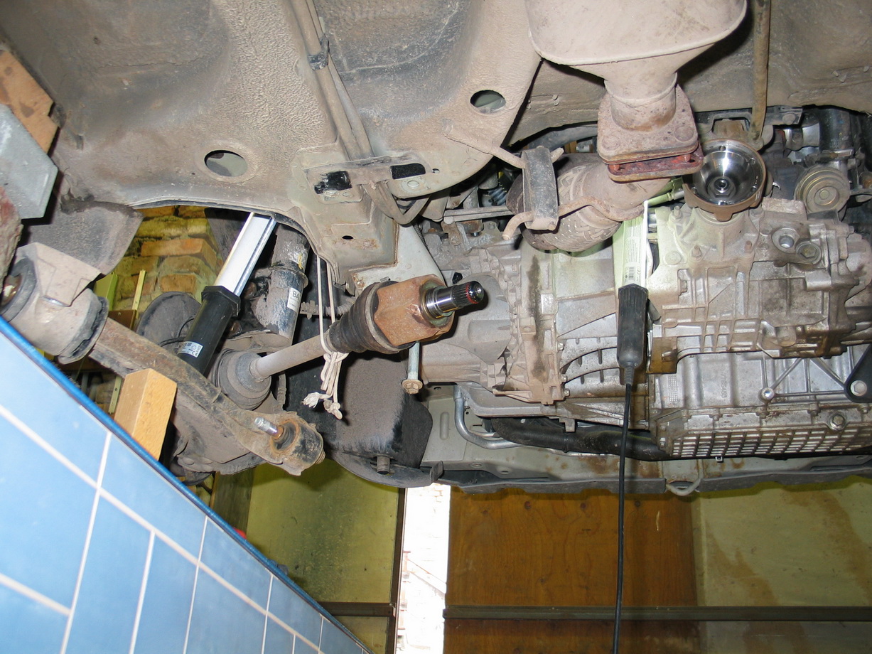 10.Vycuknout oběpoloosy od převodovky (Šroubovák mezi poloosu a převodovku a škubnout)
