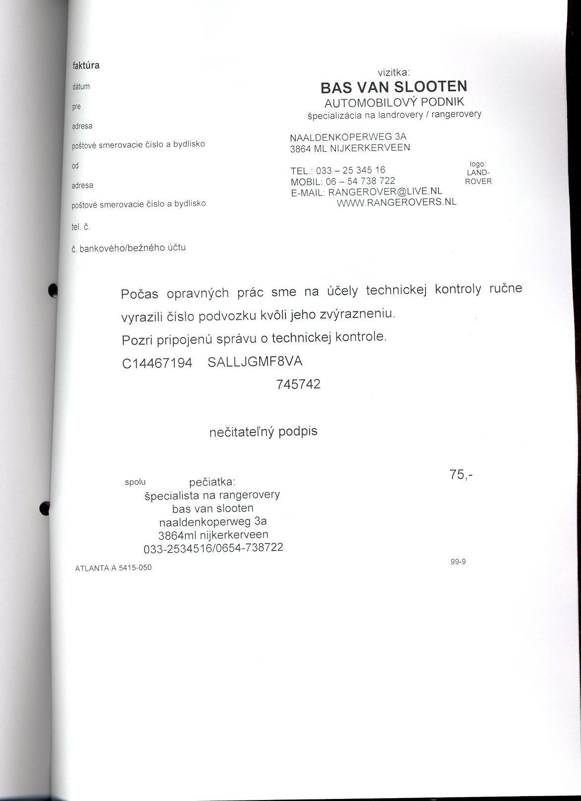No nic ta sme zacali obhanat chlapika v holandsku ze kde je problem ten sieldo predajne Land Roveru kde auto bolo kupene povodnym majitelom v 97siedmom a servisovane a odkial som ho aj ja kupil a tam mu povedali ze to musi byt interny problem vyrobcu Landr Rover v anglicku a ze musi byt inspekcne preverene preco su niektore cislice vo Vin kode ramu dva krat prebite cez seba.