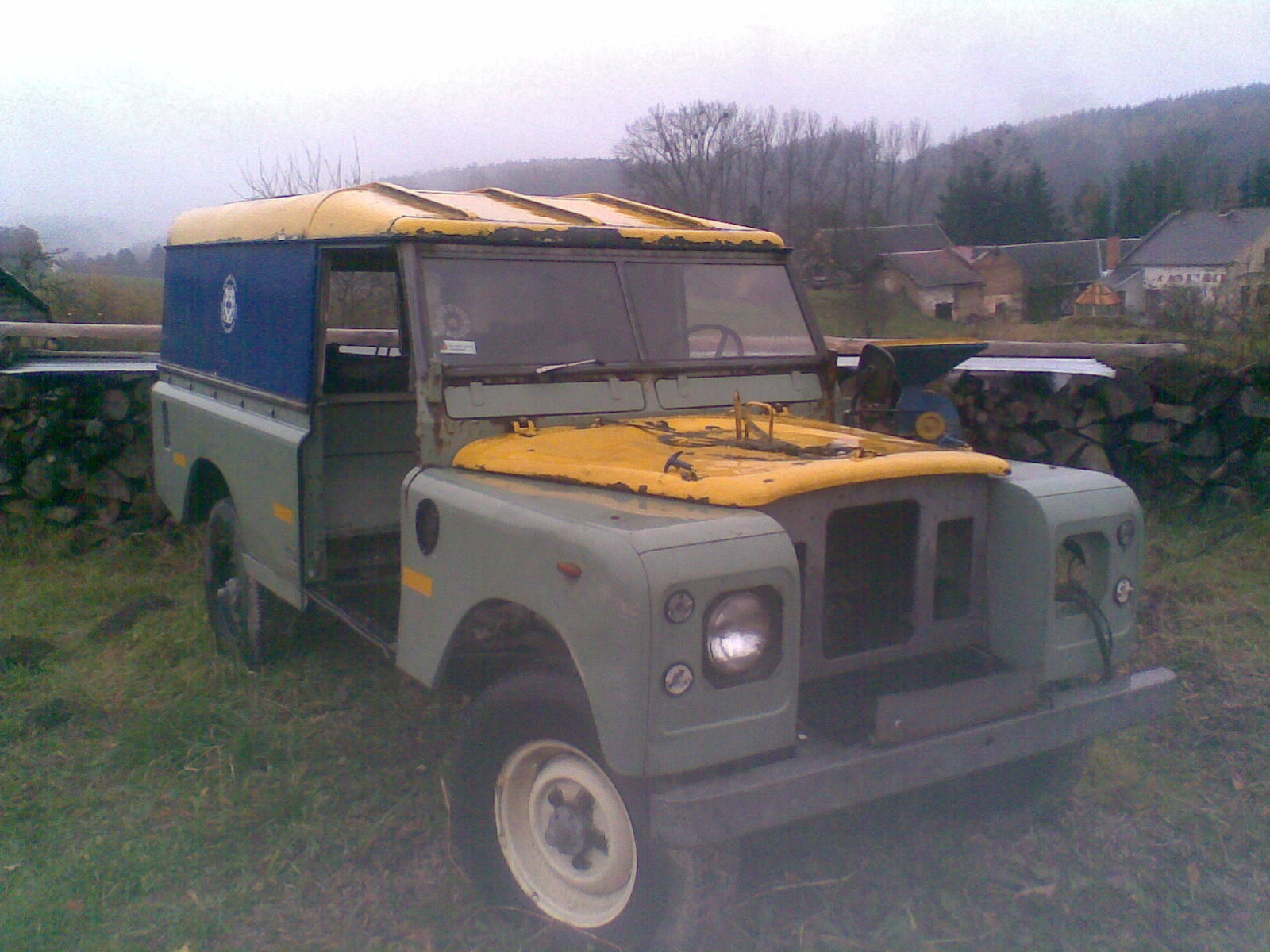 .....For sale for best bid over 50.000 kc . Originates from a Langeland, Denmark, were used as a commuter car to Svendborg, no terrain driving. Parked in barn for 10 years until 2005 when I bought it. Various people offered their help on the project, some paid, some volunteer. Result is that it's left as a puzzle, and I've only been able to drive it about 40 km in 5 years! Springs and shocks has been replaced, brakes/drums overhauled, frame thoroughly repaired; front frame replaced, diesel system cleaned/repaired. Steering rod replaced, new renovated starter motor ready to install. I'm selling it with hard top and motor hood from my new LR, hence the odd color combination. It's officially imported to Czech Republic, but not licensed.