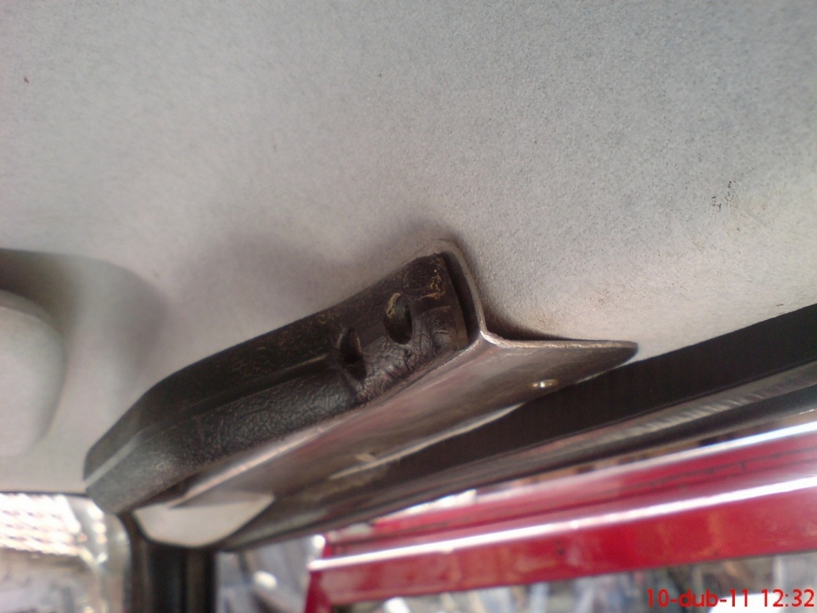 No mě tam chmatal úplně každej,tak sem to vyřešil madlem ze staré škodovky.Madlo sem prvně nanýtoval na nerez plech a pak sem to přichytil šroubama k hornímu lemu střechy