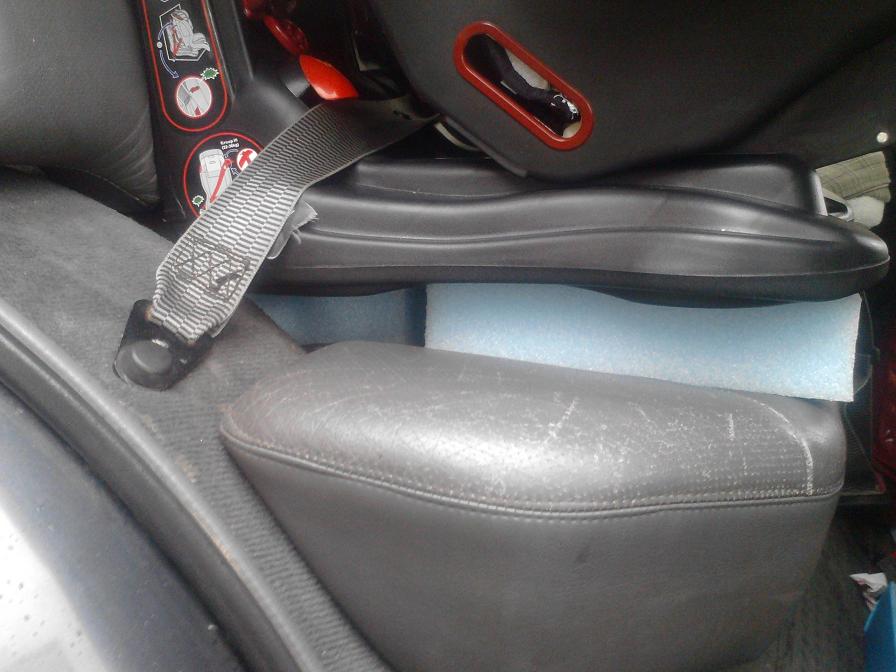 Koupily jsme autosedacku pro deti od 9kg a nejak me tam moc nesedi.Diky hodne vylezlimu podbehu zadniho kola je vic ke stredu lavice a po ukotveni bezpecnostnim pasem je hodne volna.Trosku jsem ji vypodlozil(viz foto) a je to to o neco lepsi,ale nevim jestly to bude bezpecny.Jiny sedacky maji podobnou,nebo jeste sirsi tu zakladnu.Taknevim co s tim :roll: